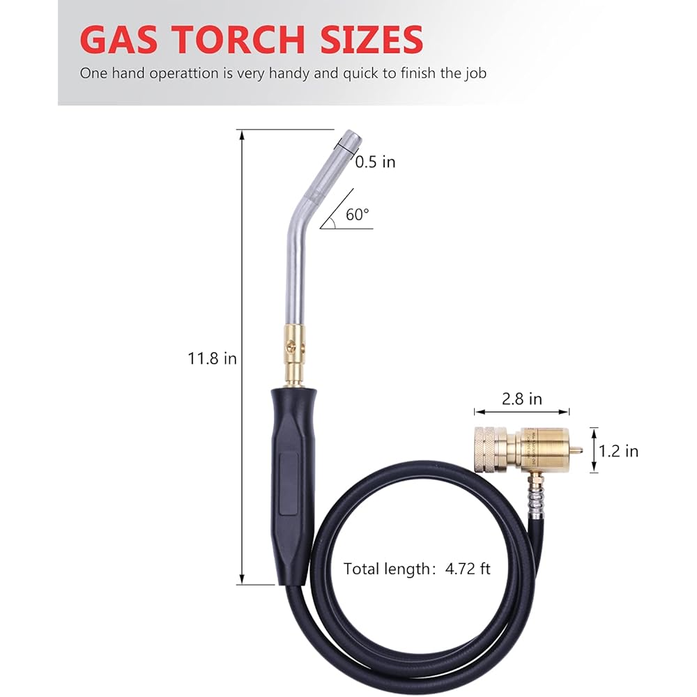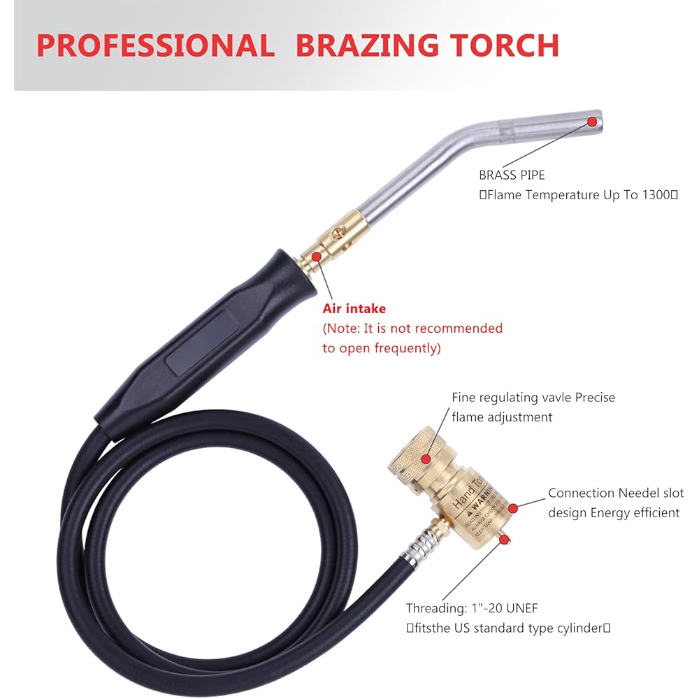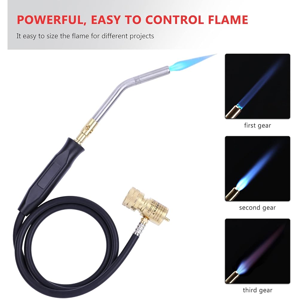 Aismrii Tuyau manuel pour chalumeau au propane, torche à gaz Mapp, torche de soudure, longueur du tuyau 1,5 m, température de fonctionnement maximale 1900 ℃ avec crochet (style basique) : Bricolage