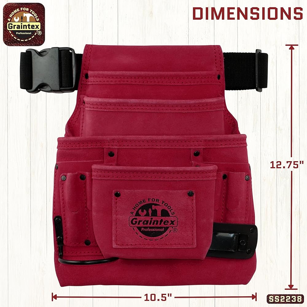 Graintex SS2238 : Pochette à Outils et Clous en Daim de Couleur Bordeaux avec Ceinture de 5,1 cm pour constructeurs, électriciens, plombiers, bricoleurs : Bricolage