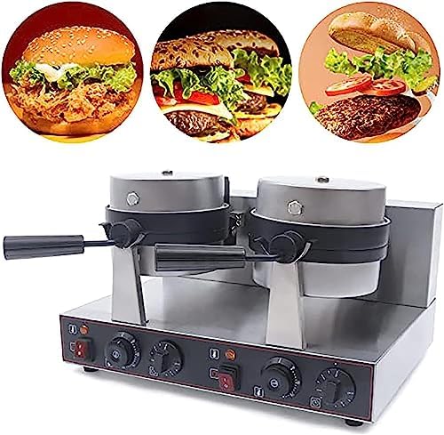 Commercial Burger Gaufrier 1300w Antiadhésif Électrique Panini Presse Burger Machine Double Face Chauffage Crème Glacée Gaufrier Baker Machine Paninis Gaufrier Cone Maker : Cuisine et Maison