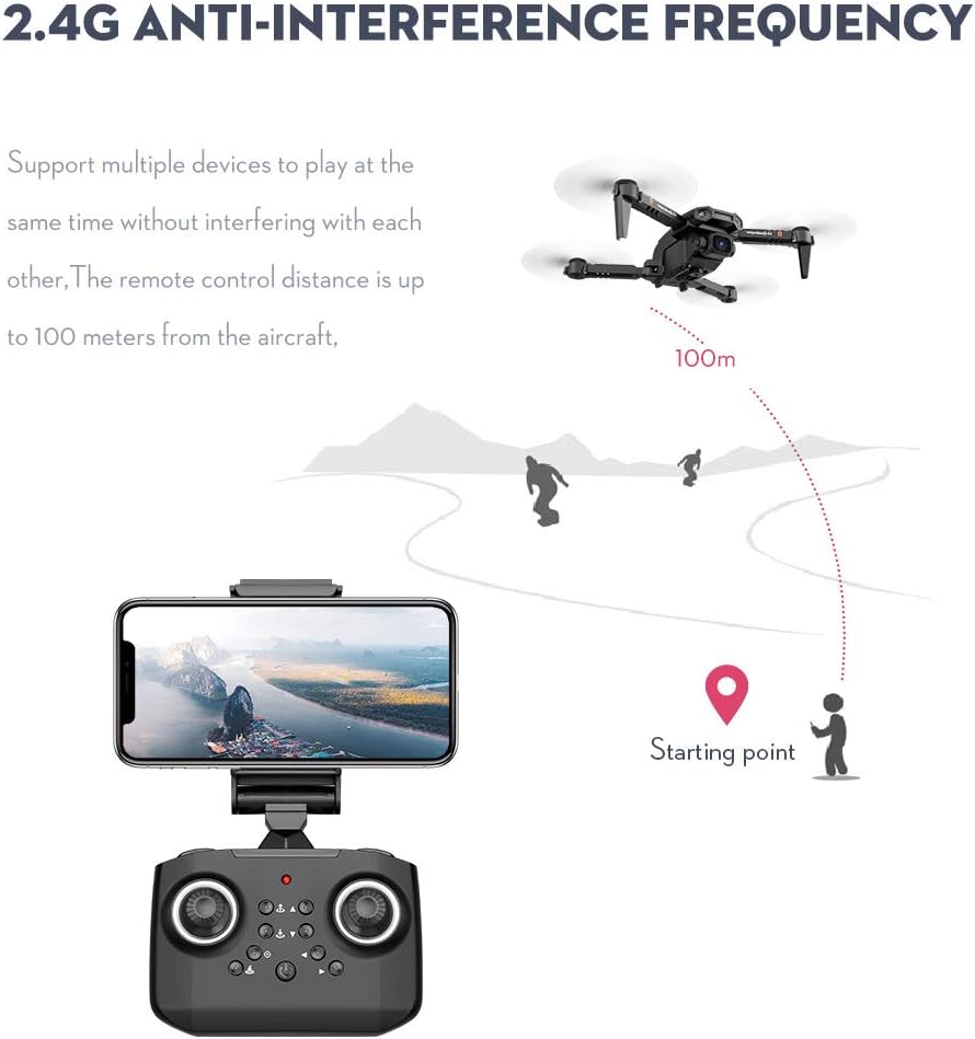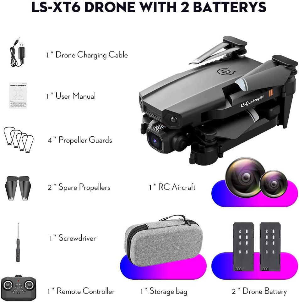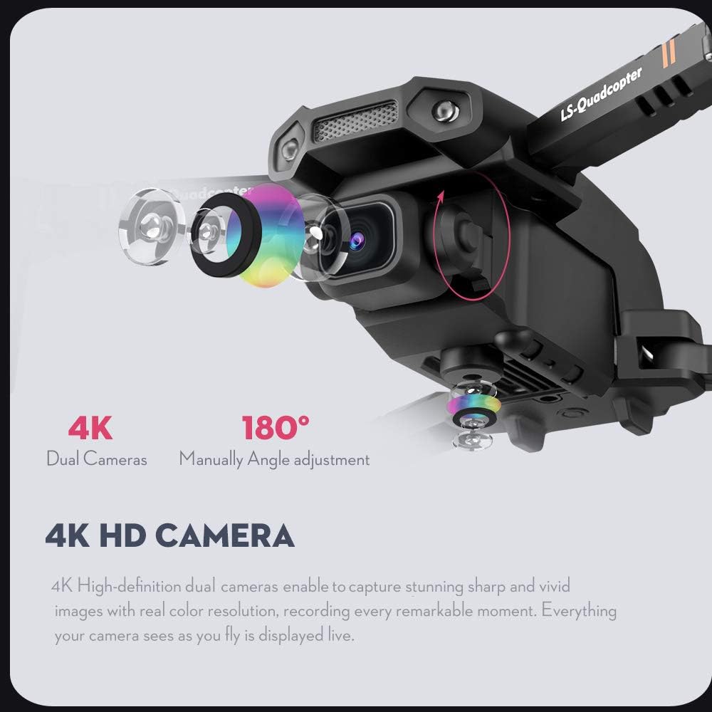 Drone avec caméra 4K, drone double caméra suivi de vol, capteur de gravité, geste, photo, maintien d'altitude, mode ’headless’, quadrirotor télécommandé pour adultes et enfants