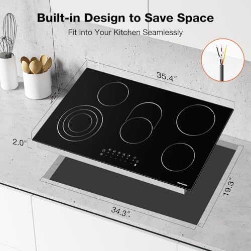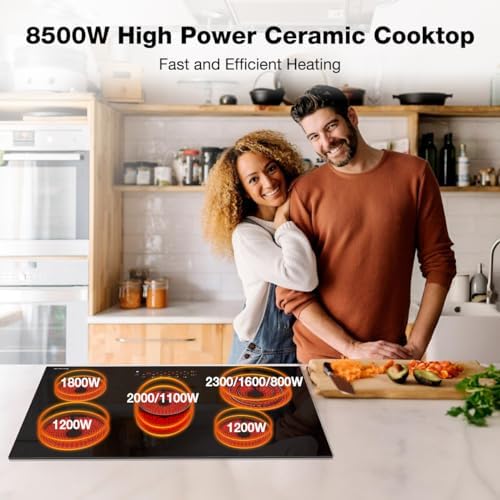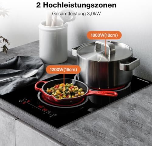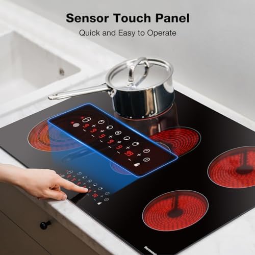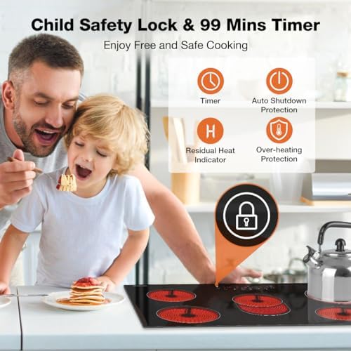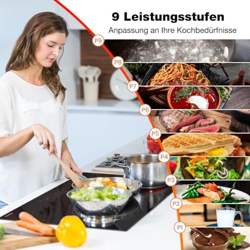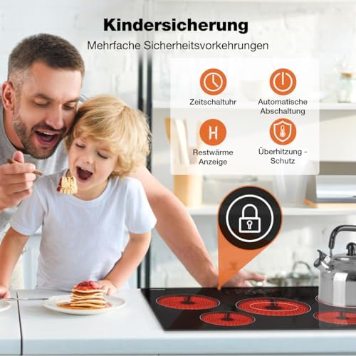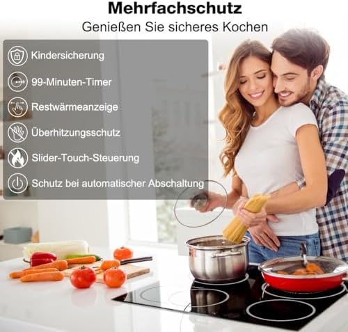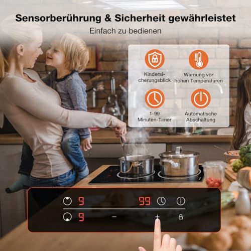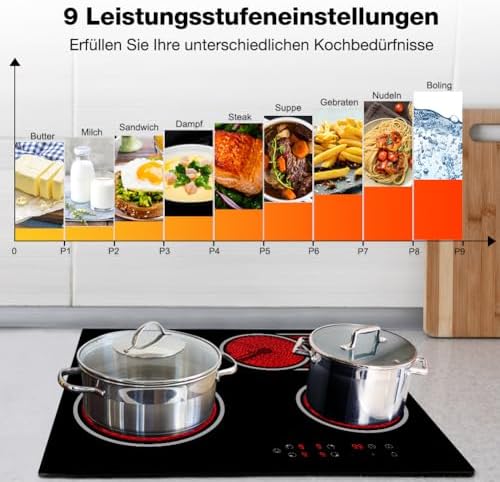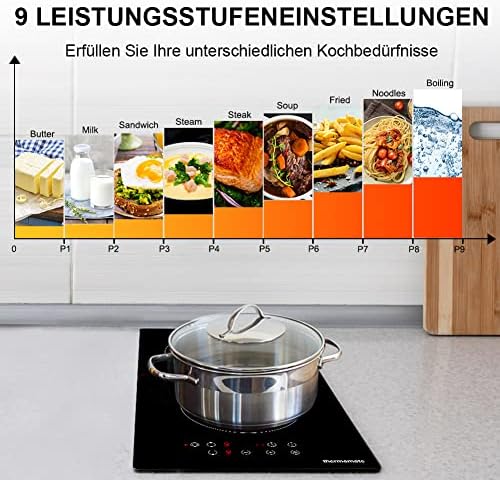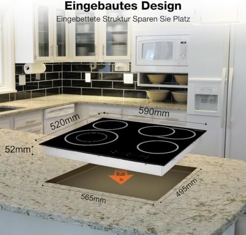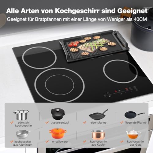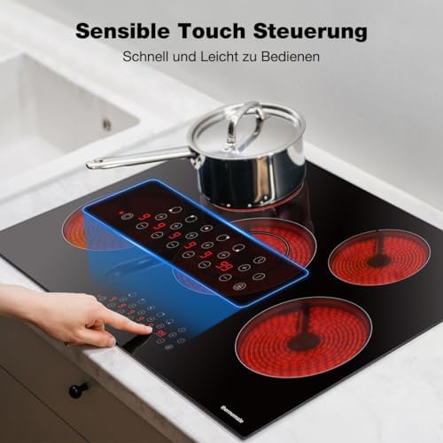 Thermomate 60cm Table de cuisson Vitrocéramique 4 Feux 6600W Encastrable Plaque Vitrocéramique Intégré, Commande Tactile, Verrou Pour Enfants, Minuterie, [Classe énergétique A ] : Gros électroménager