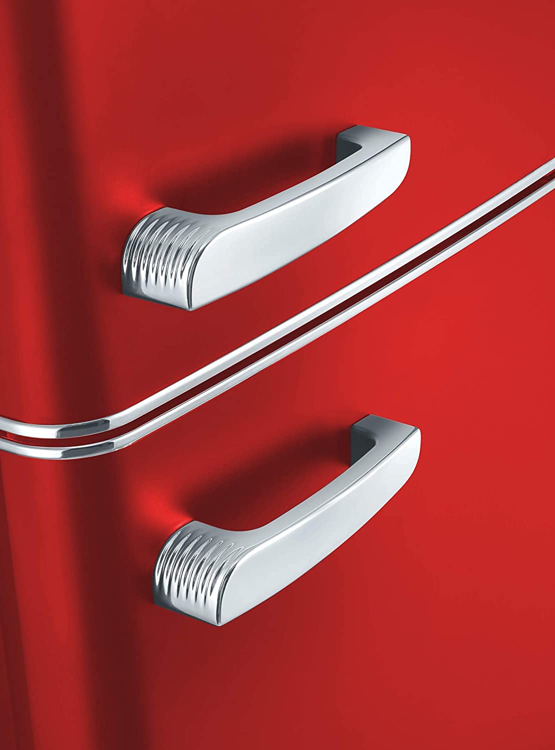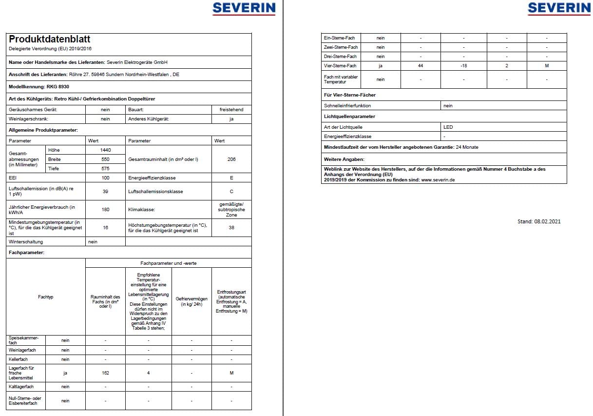 SEVERIN Réfrigérateur Congélateur 2 portes, Pose libre, Largeur 55 cm, 206L, Classe E, Veggibox incluse, Rétro, Rouge, RKG 8930