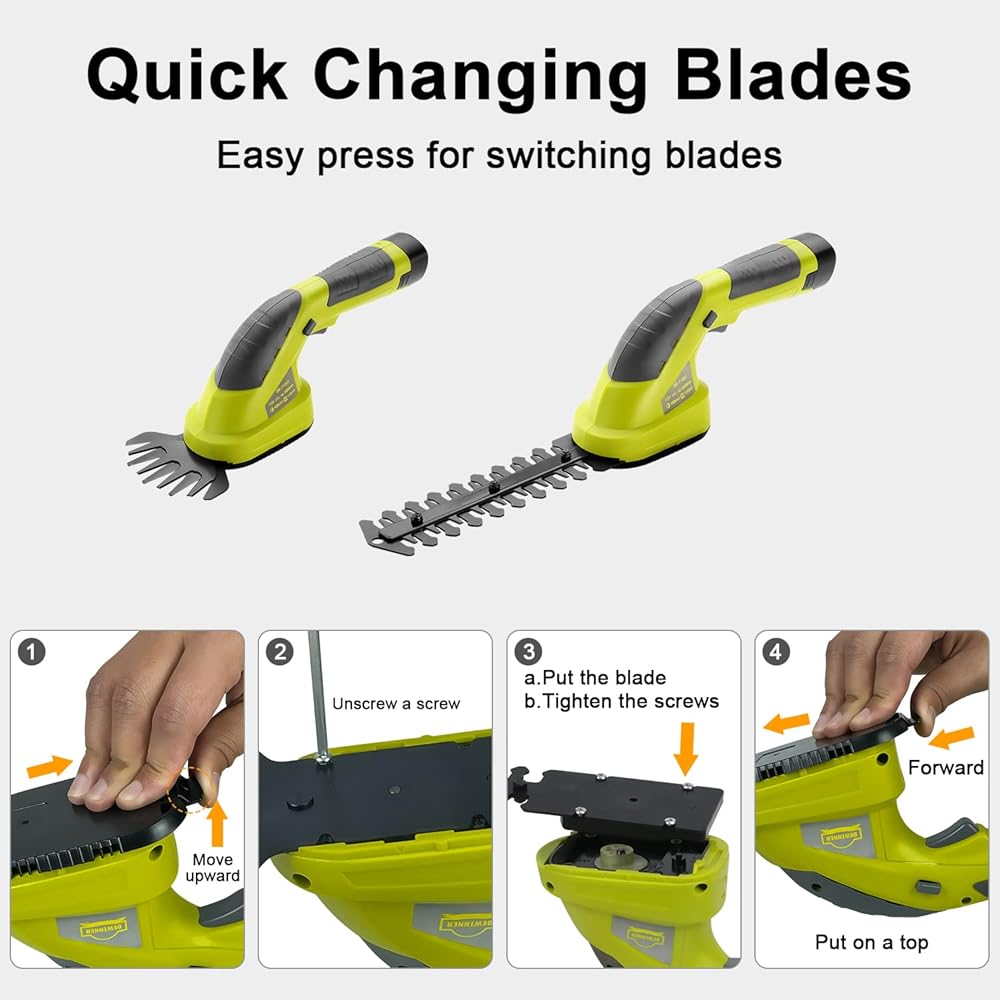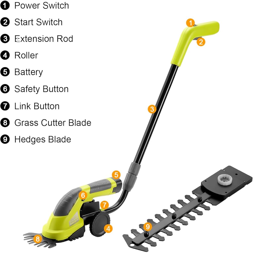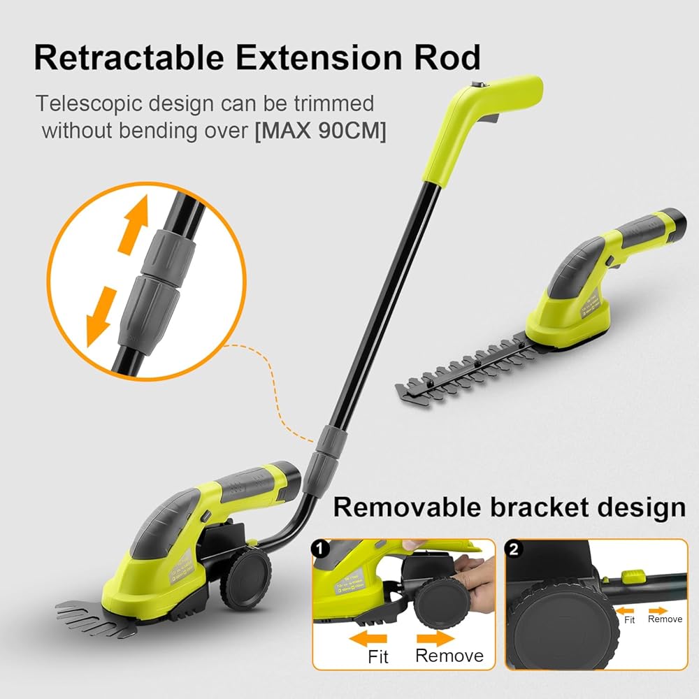 DEWINNER Coupe Bordure sans Fil 7.2V, 2 en 1 Cisailles à Gazon, Légère Tondeuse à Gazon, Batterie 1500mAh, Manche Long Télescopique Détachable, pour Couper Gazon/Buisson/Haie : Jardin
