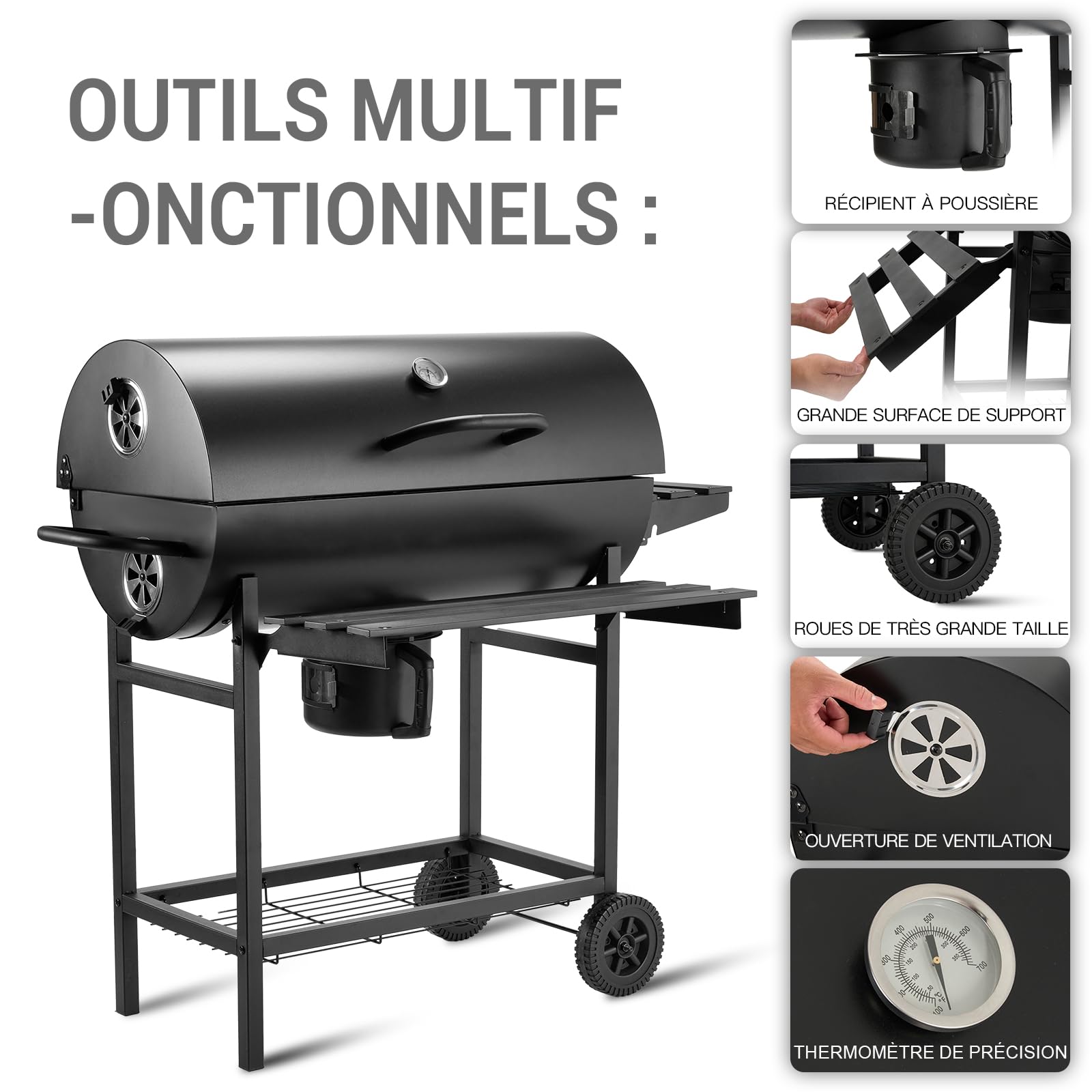 TEENO Barbecue Charbon de Bois,avec Grille de Cuisson XXL,Gants Anti-BrûLures, ThermomèTre,Tiroir à Cendres, éVent RéGlable,Grand Barbecue au Charbon de Bois (Basic)