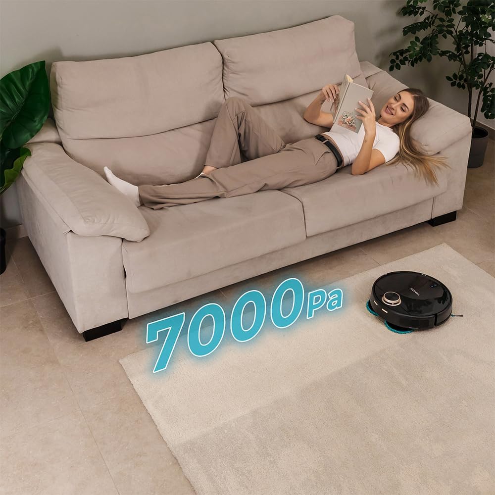 Cecotec Robot aspirateur Conga 13090 Spin Revolution Home and Wash, 7000 Pa, Technologie Laser, Brosse en Silicone, serpillère rotative, Brosse latérale, Application et Connexion Bluetooth et WiFi : Cuisine et Maison