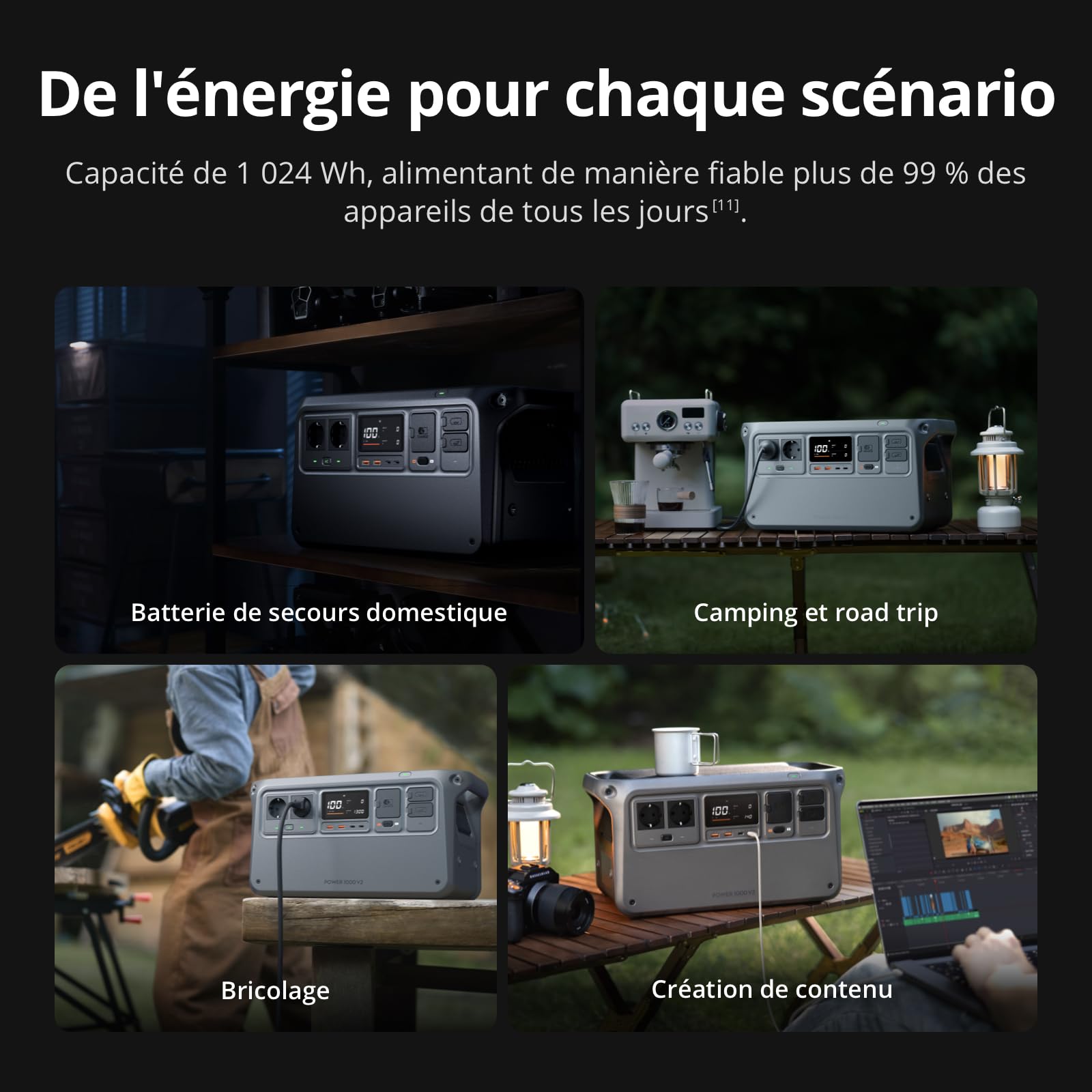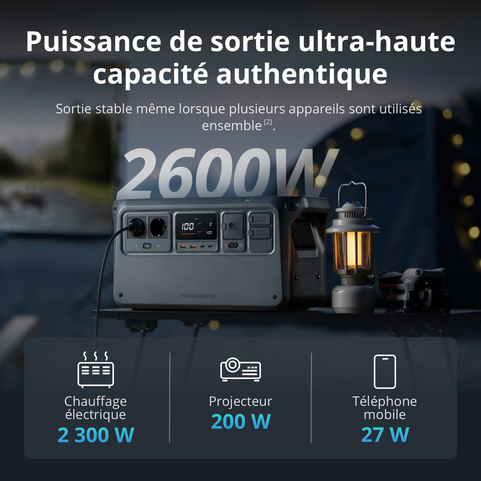 DJI Power 1000 V2, station électrique portable 1 024 Wh (Batterie LFP), sortie stable de 2 600 W, recharge de 0–80% en 37 Min, générateur électrique p