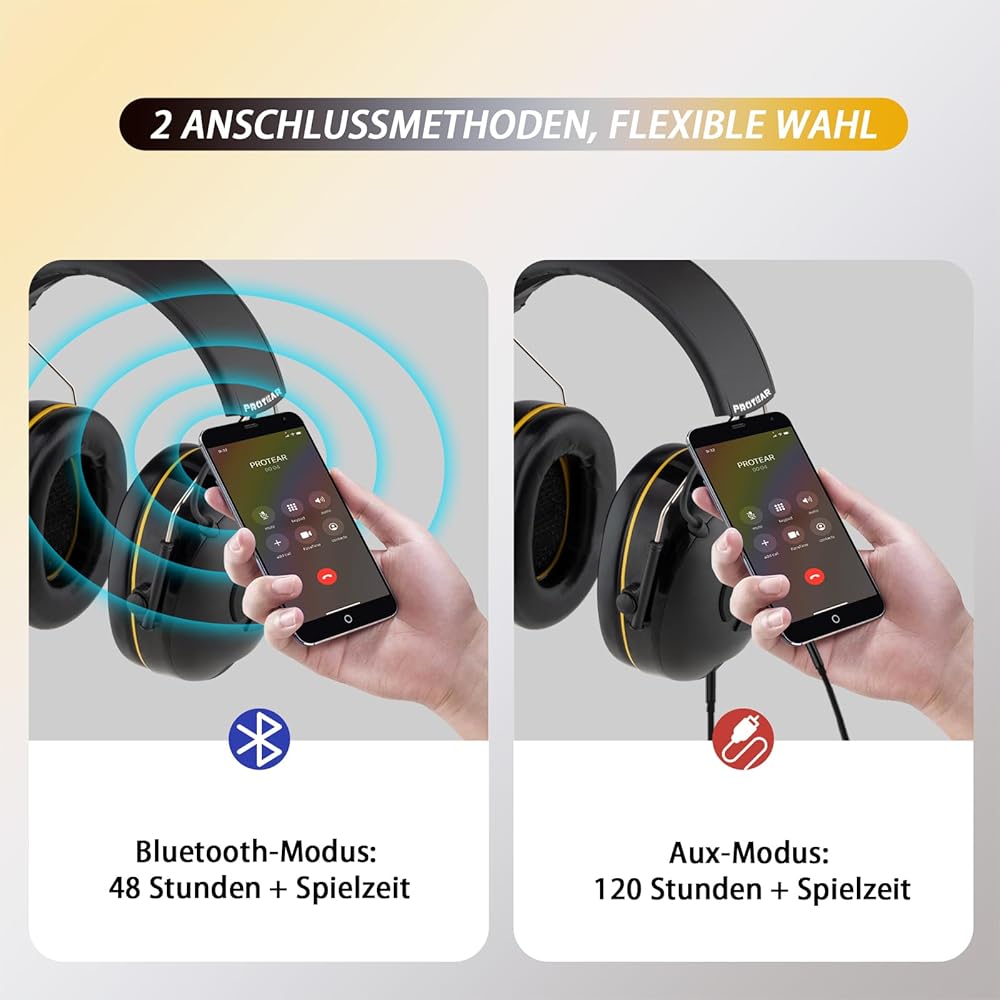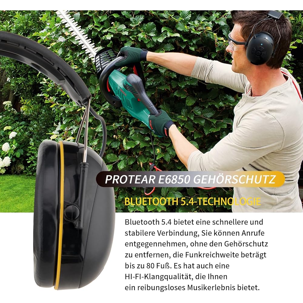 PROTEAR Casque anti Bruit bluetooth 5.4, haut-parleurs haute fidélité,Microphone intégré, 120h + de lecture, protection auditive idéale pour la tonte, le travail du bois, SNR 30 dB : Bricolage