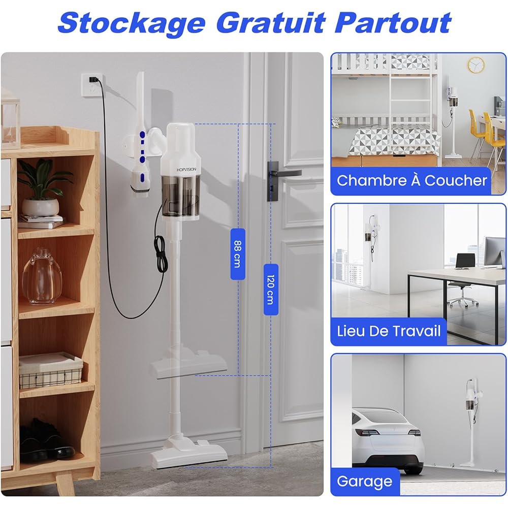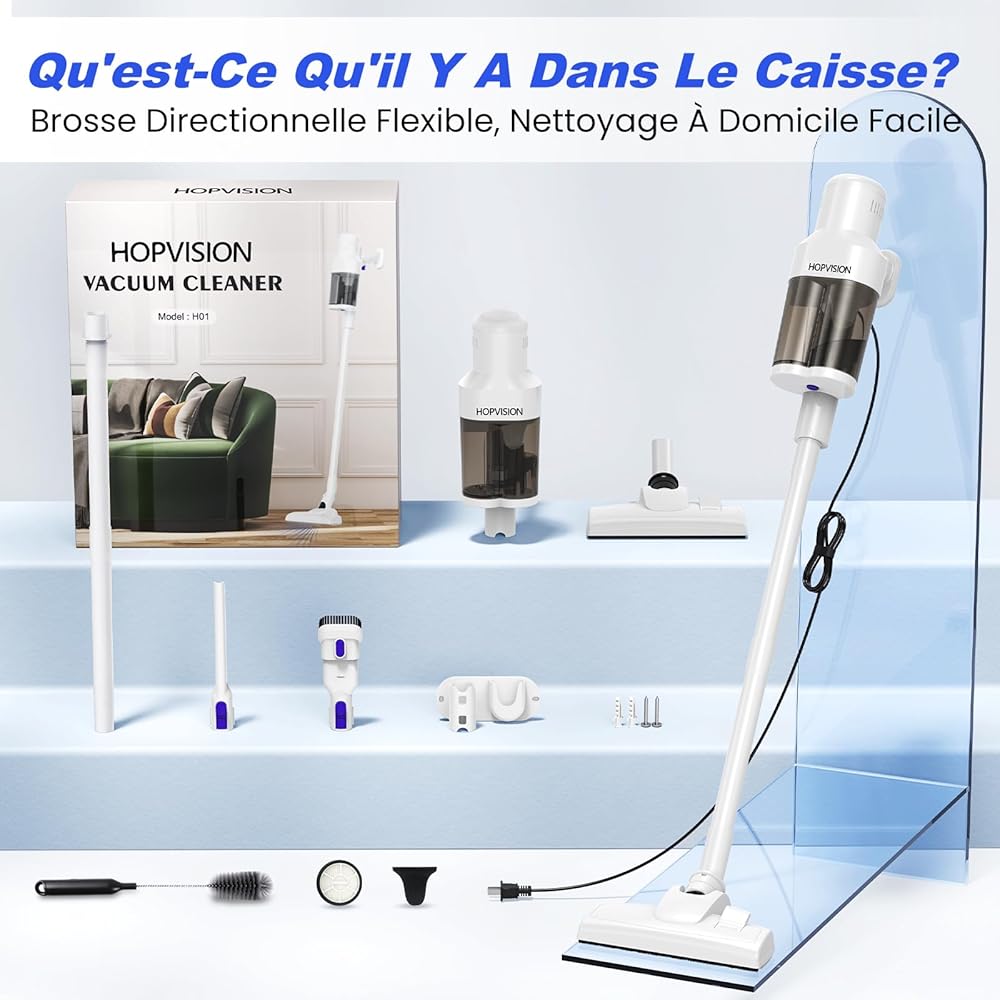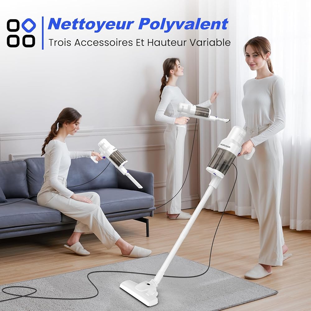 HOPVISION Aspirateur, Aspirateur Balai sans Sac Puissant 20Kpa 600w, Aspirateur Balai avec Fil 6M 3 en 1, Aspirateur Léger avec Filtre Hepa et Surrpot Mural pour Maison Tapis Sol Dur : Cuisine et Maison