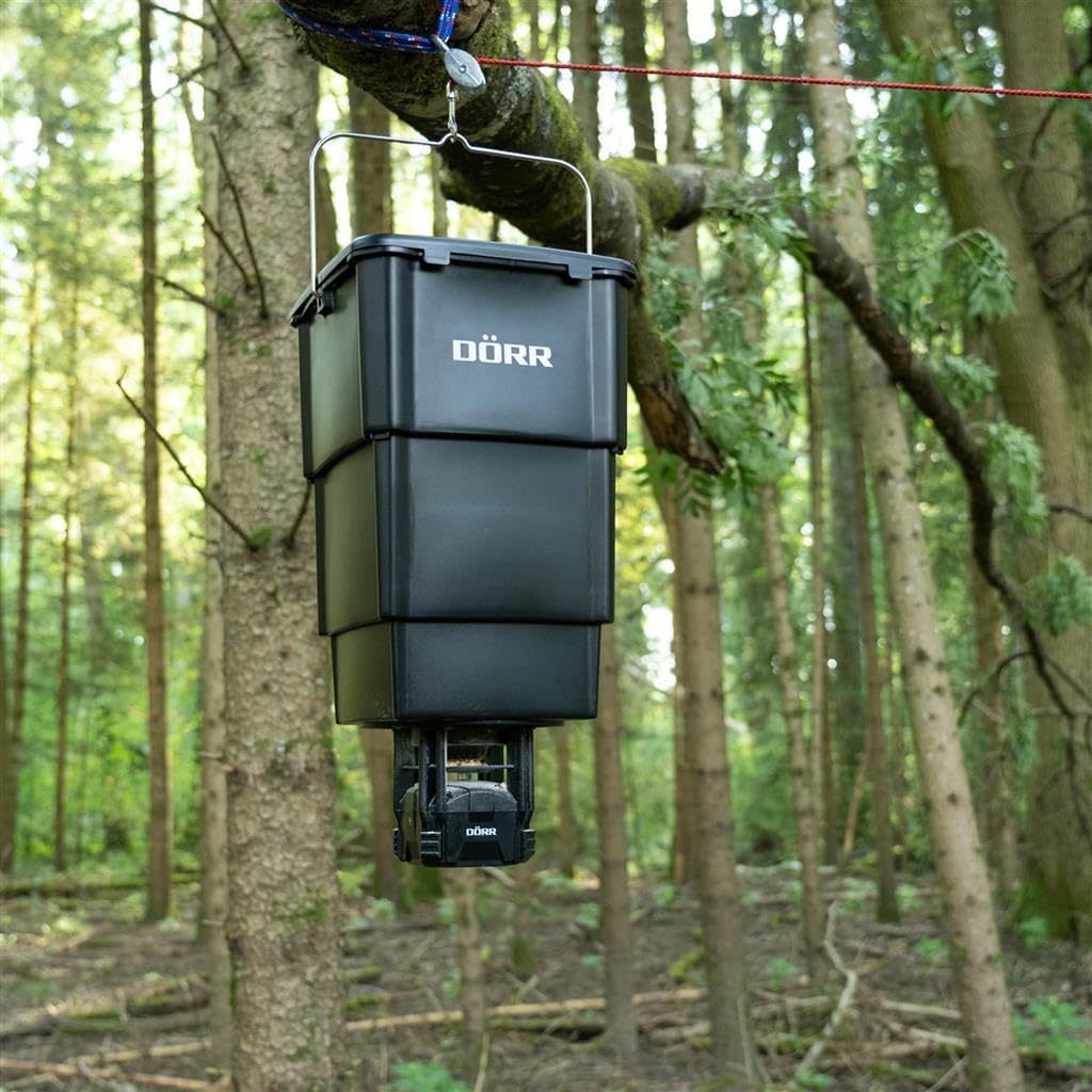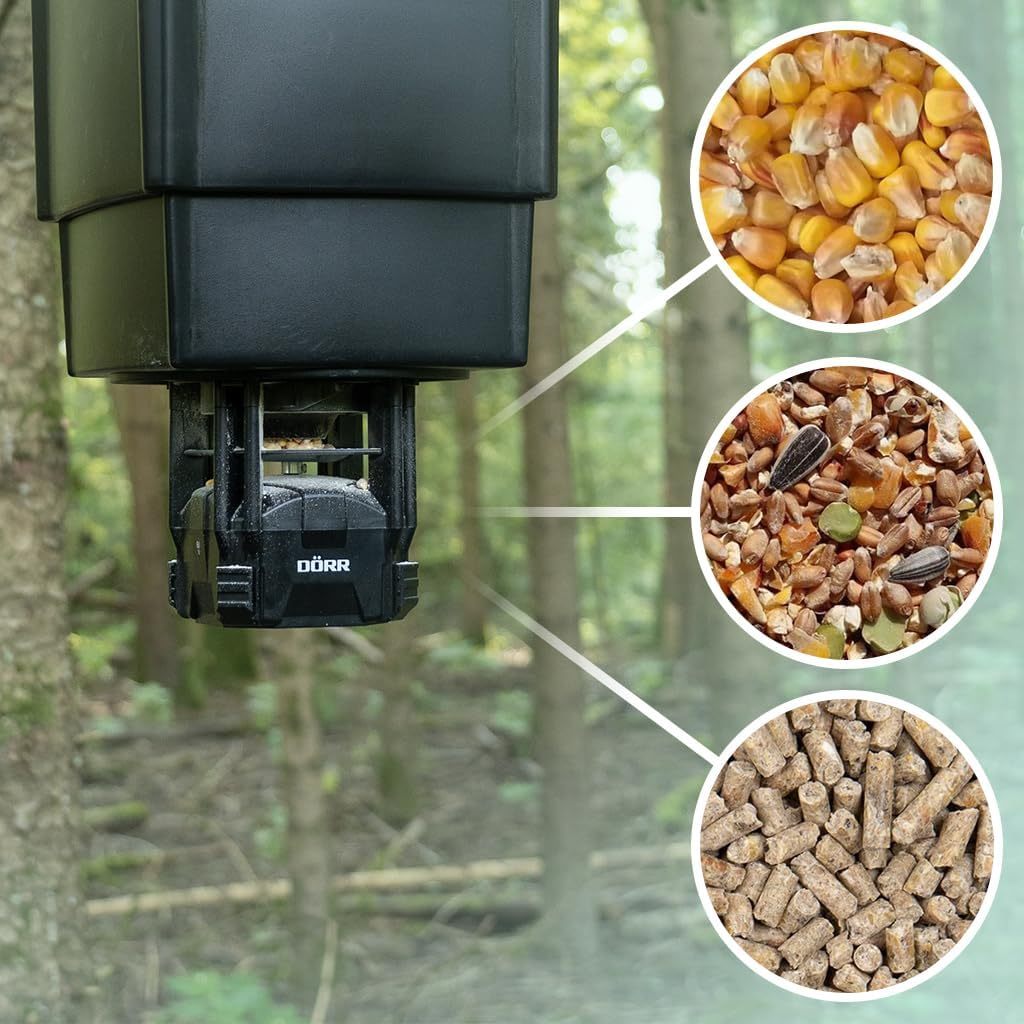 DÖRR Futterstreuer Compact - 4 Fütterungszeiten - Wildtiere - Fische - Einfache Steuerung - Verschiedene Futterarten - Mit Behälter