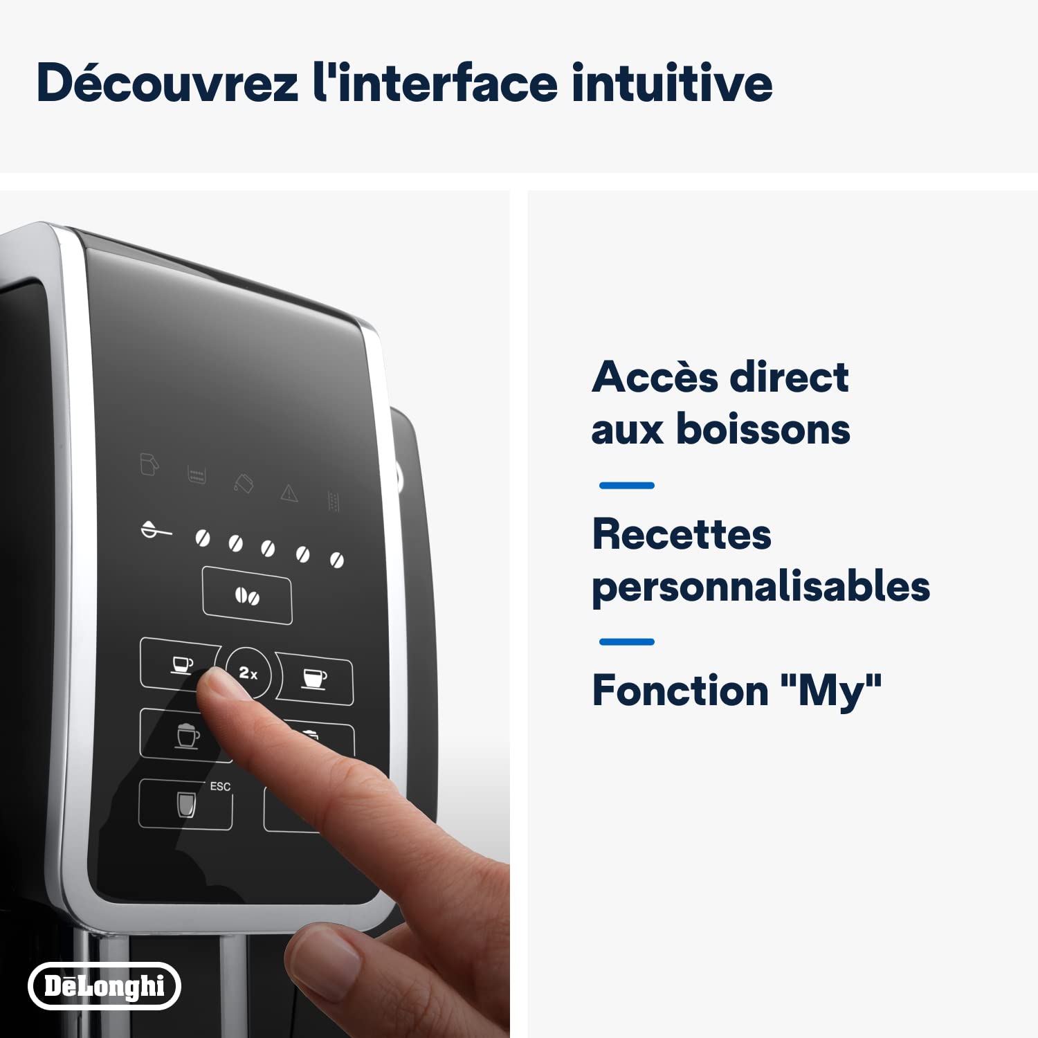 De'Longhi Dinamica Machine a Café Grain ECAM350.50.B, Machine Expresso et Cappuccino, Ecran Tactile, 1.8L, Noir