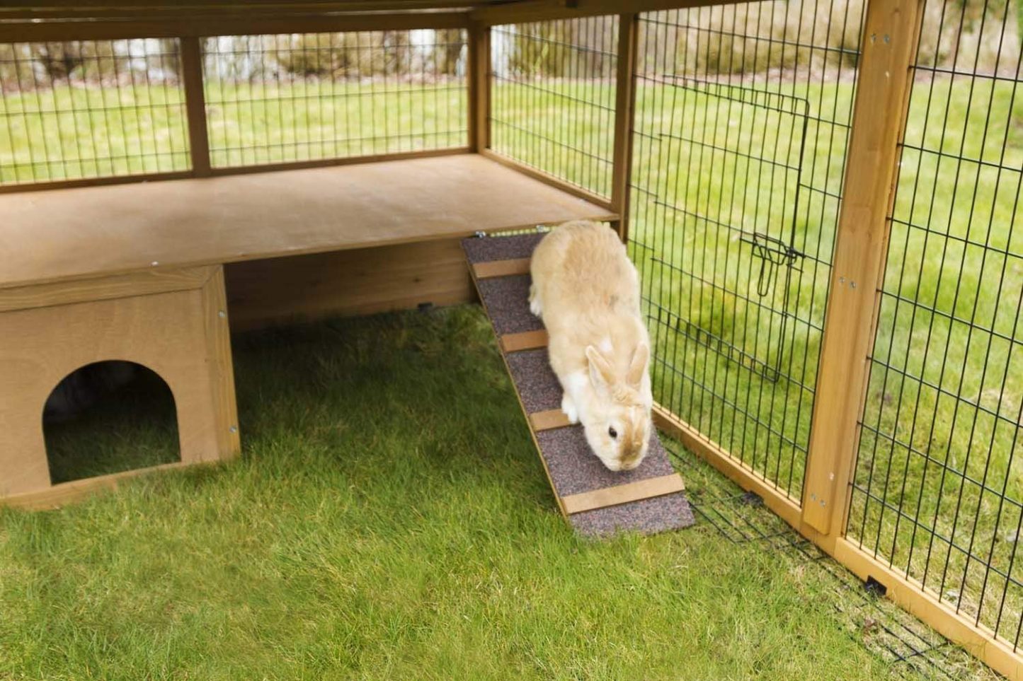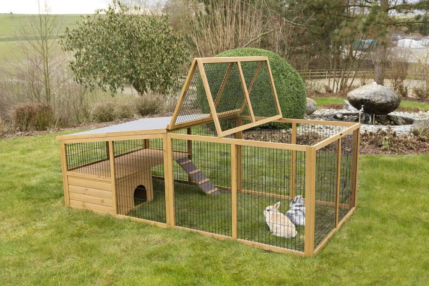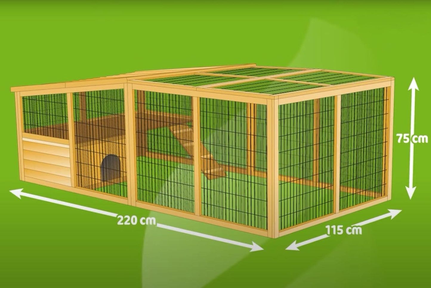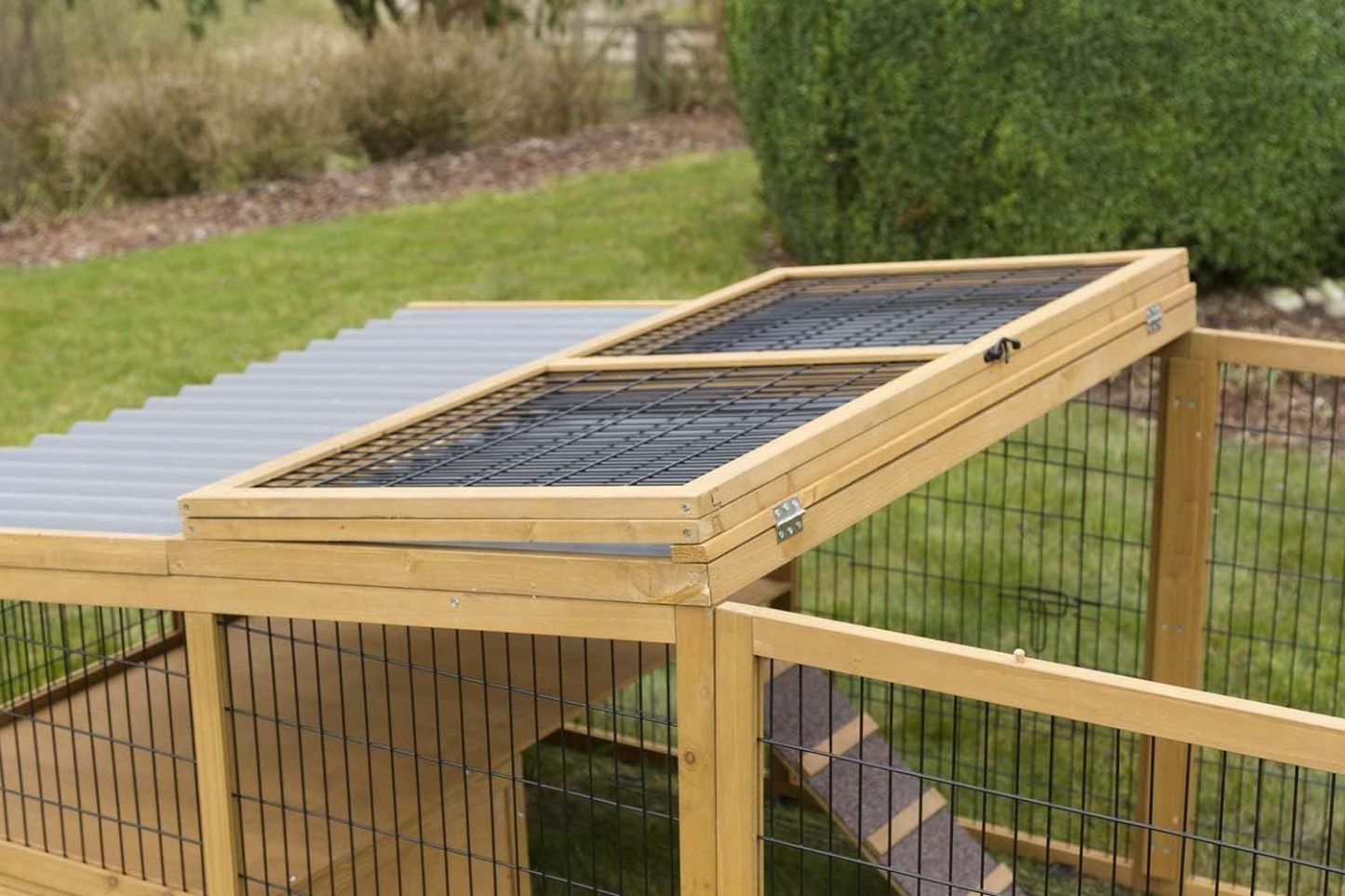 Kerbl Freigehege mit Ausbruchsperre (Gitterabstand 2,5 cm, überdachter Auslauf, mit Kunststoffdach, inkl. Kleintierhaus + Aussichtsplattform) 81708