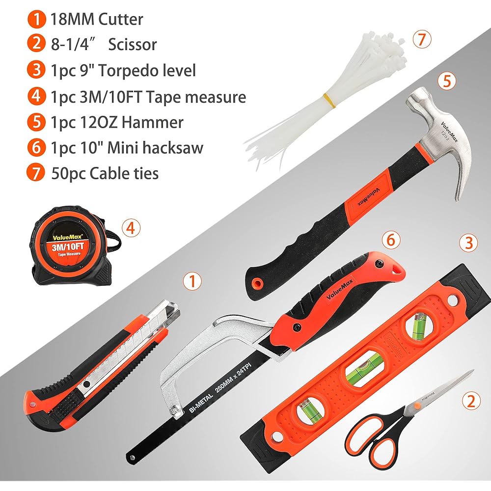 ValueMax Kit d'Outils 219 Pièces avec Sac Durable, Caisse à Outils Complete pour Bricolage, Réparation et Entretien Domestique : Bricolage