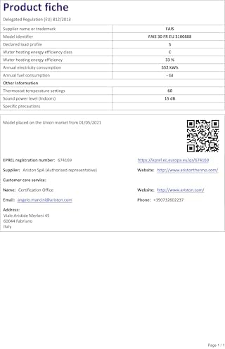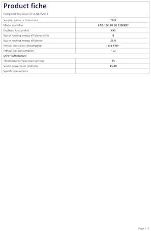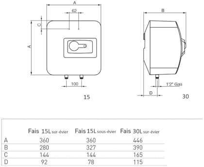 FAIS 30 FR EU Chauffe eau électrique sur évier 30 Litres, Puissance 1500W Facile à Installer Classe Énergétique C. Conçu et fabriqué pour être installé en France : Bricolage