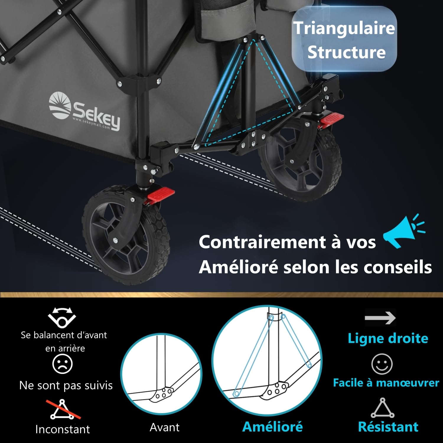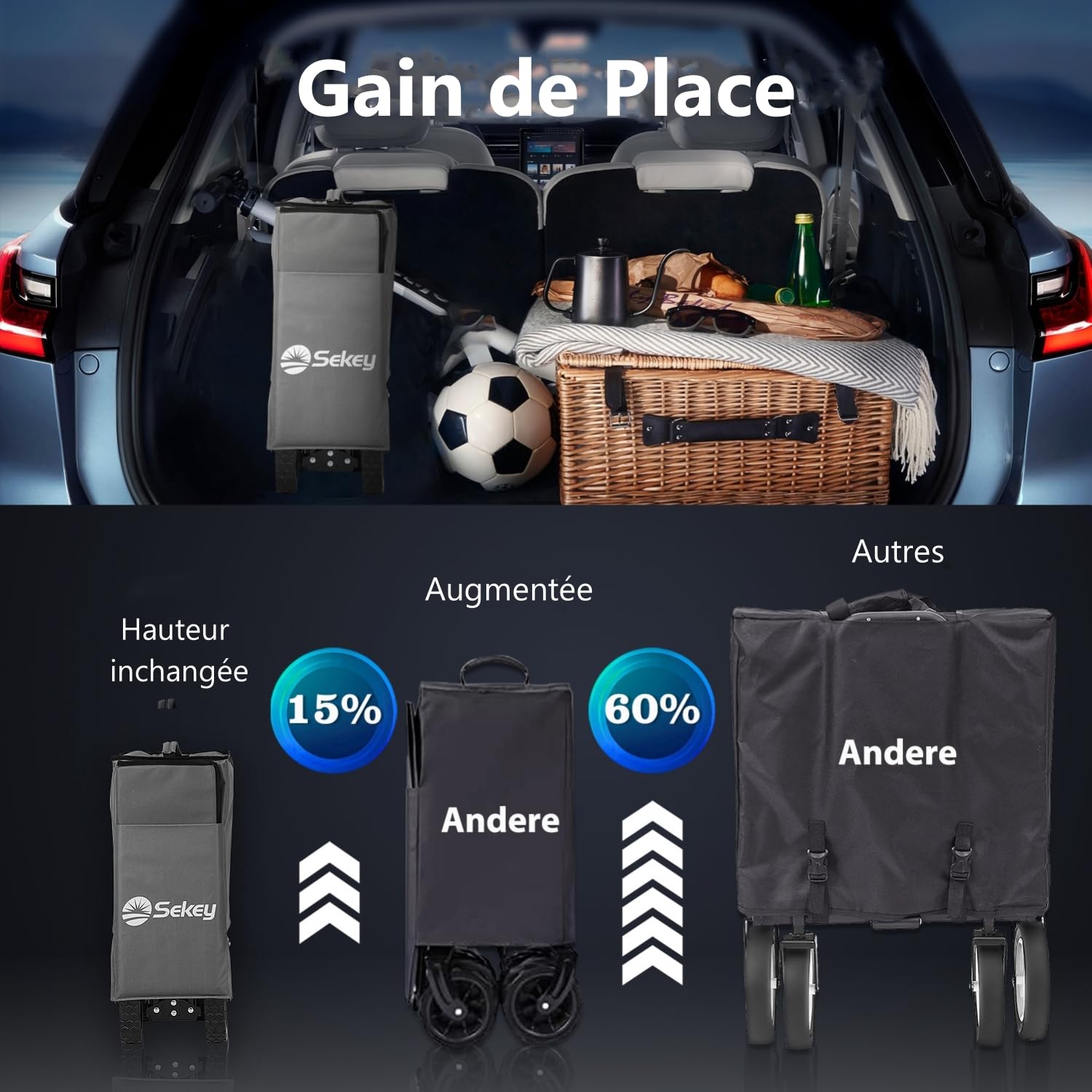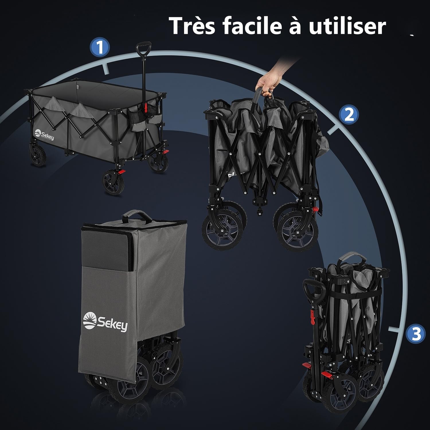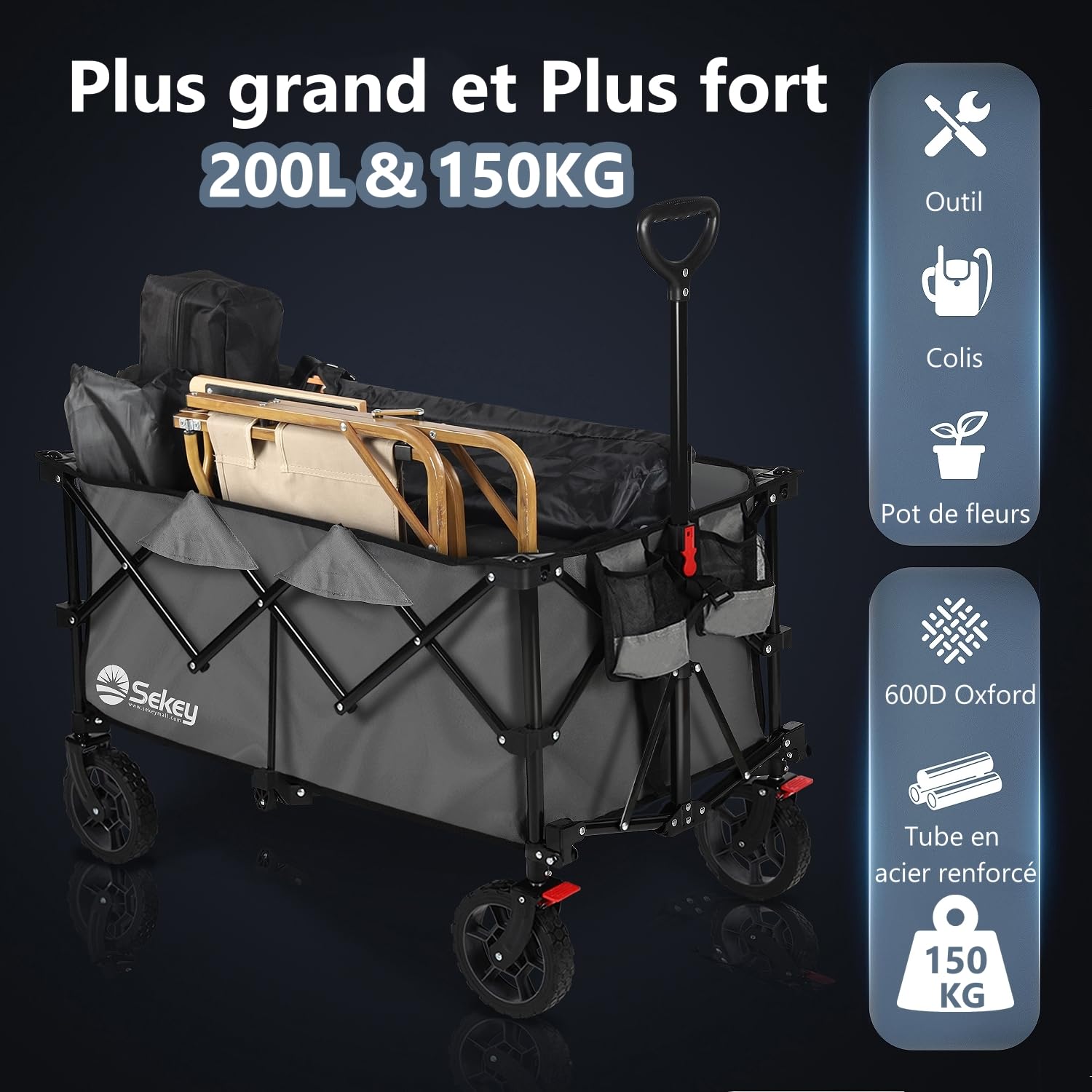 Sekey XXL Plus Chariot Pliable de Jardin 200L 150KG, Chariot de Transport Tout-Terrain avec Freins, Breveté Pliable dans Quatre Directions SE4010, Anthracite : Jardin