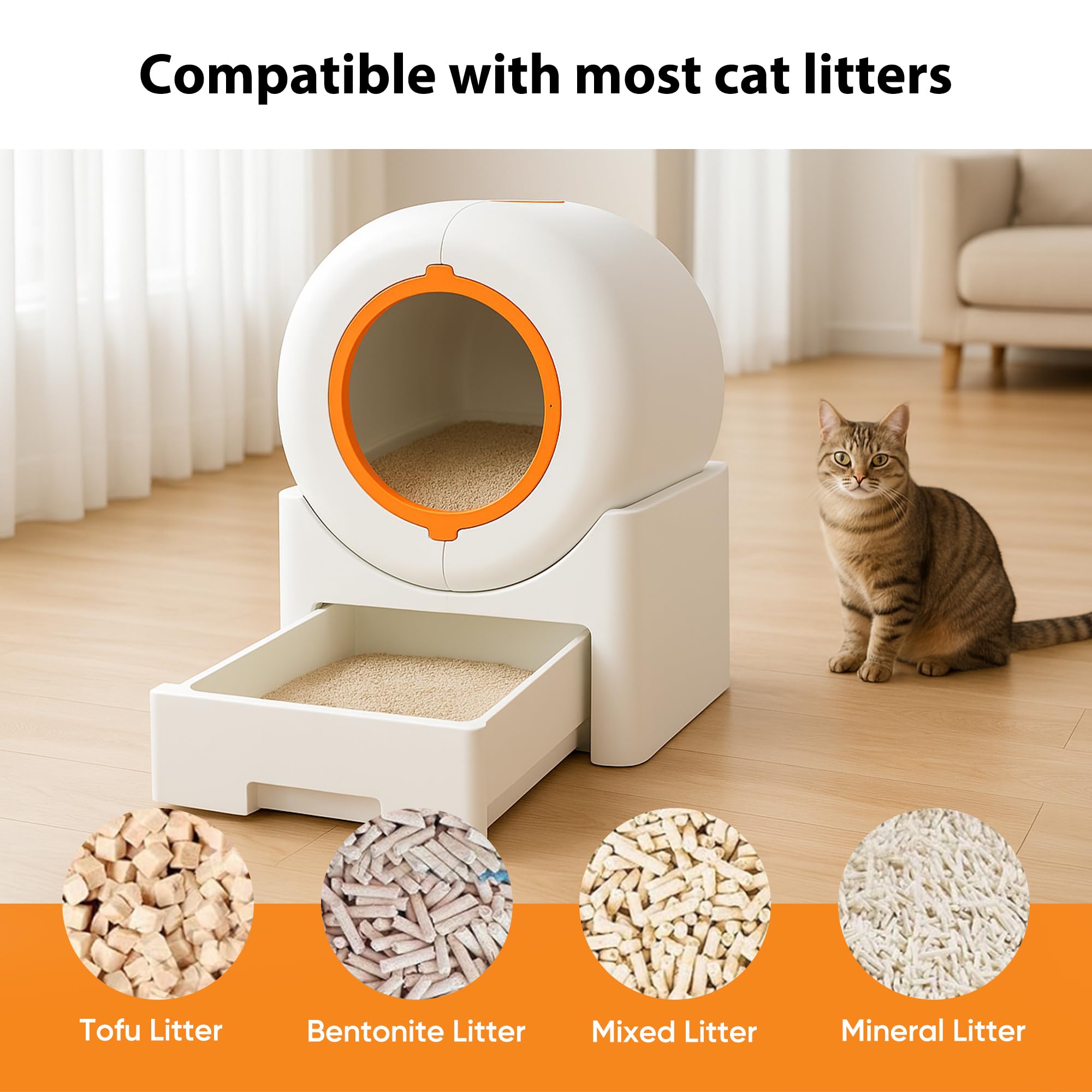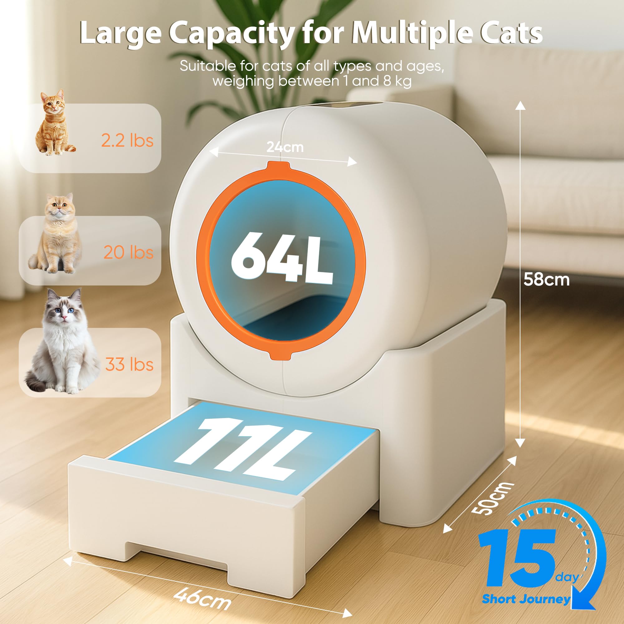 serebrant Litiere Chat Autonettoyante Bac à Litière Autonettoyante pour Chat Litière Automatique 64L Bac à Litter Automatic, Anti-fuites/Anti-pincemen