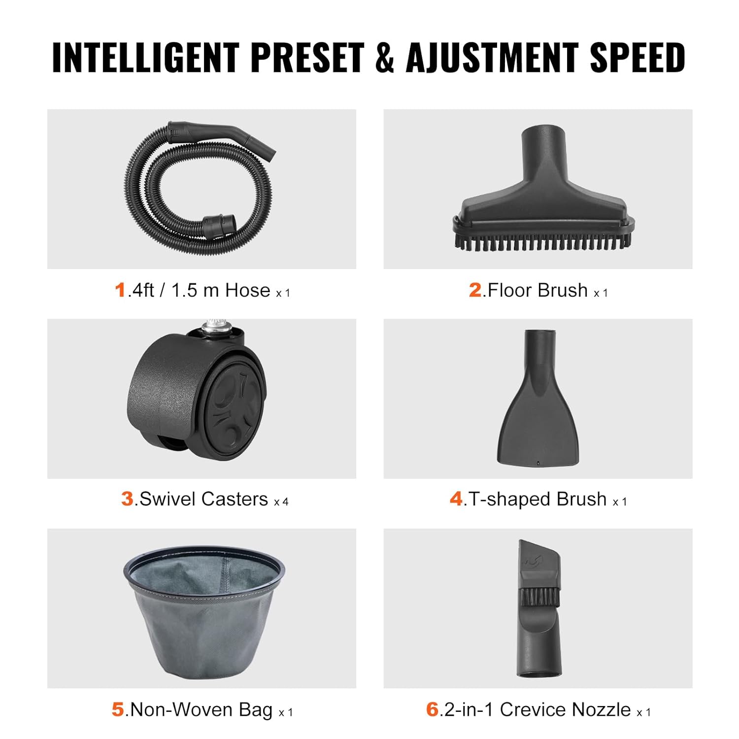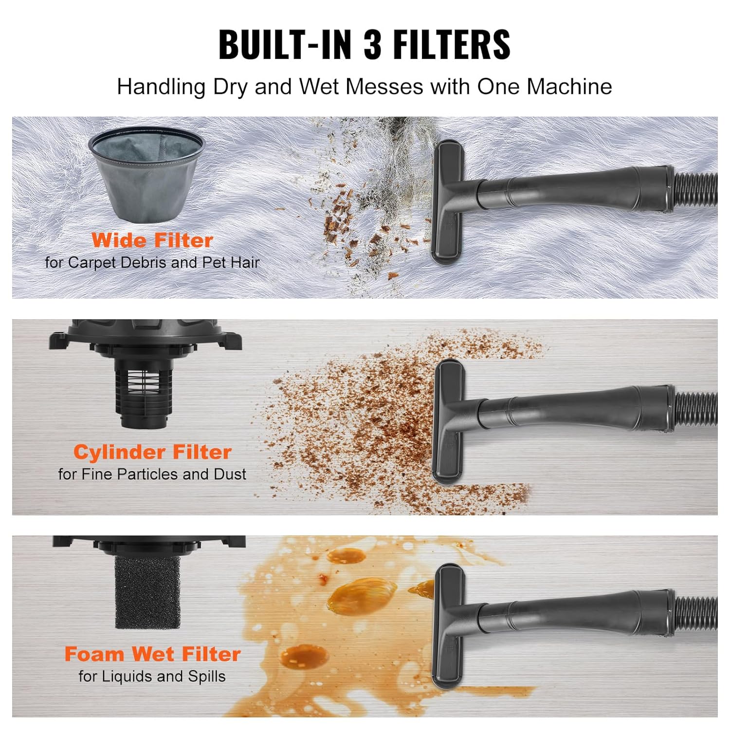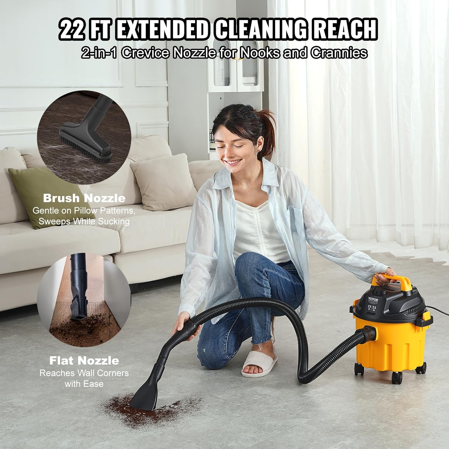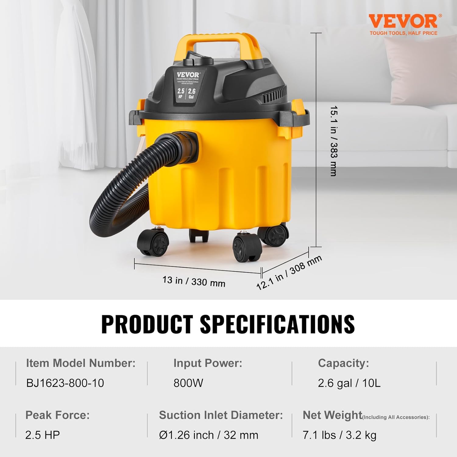 VEVOR Aspirateur eau et poussière 10 L, aspirateur d'atelier sec humide portable léger, 2,5 CV max, aspiration et soufflerie efficaces avec buse, roulettes, pour tapis, débris, poils d'animaux, jaune : Cuisine et Maison