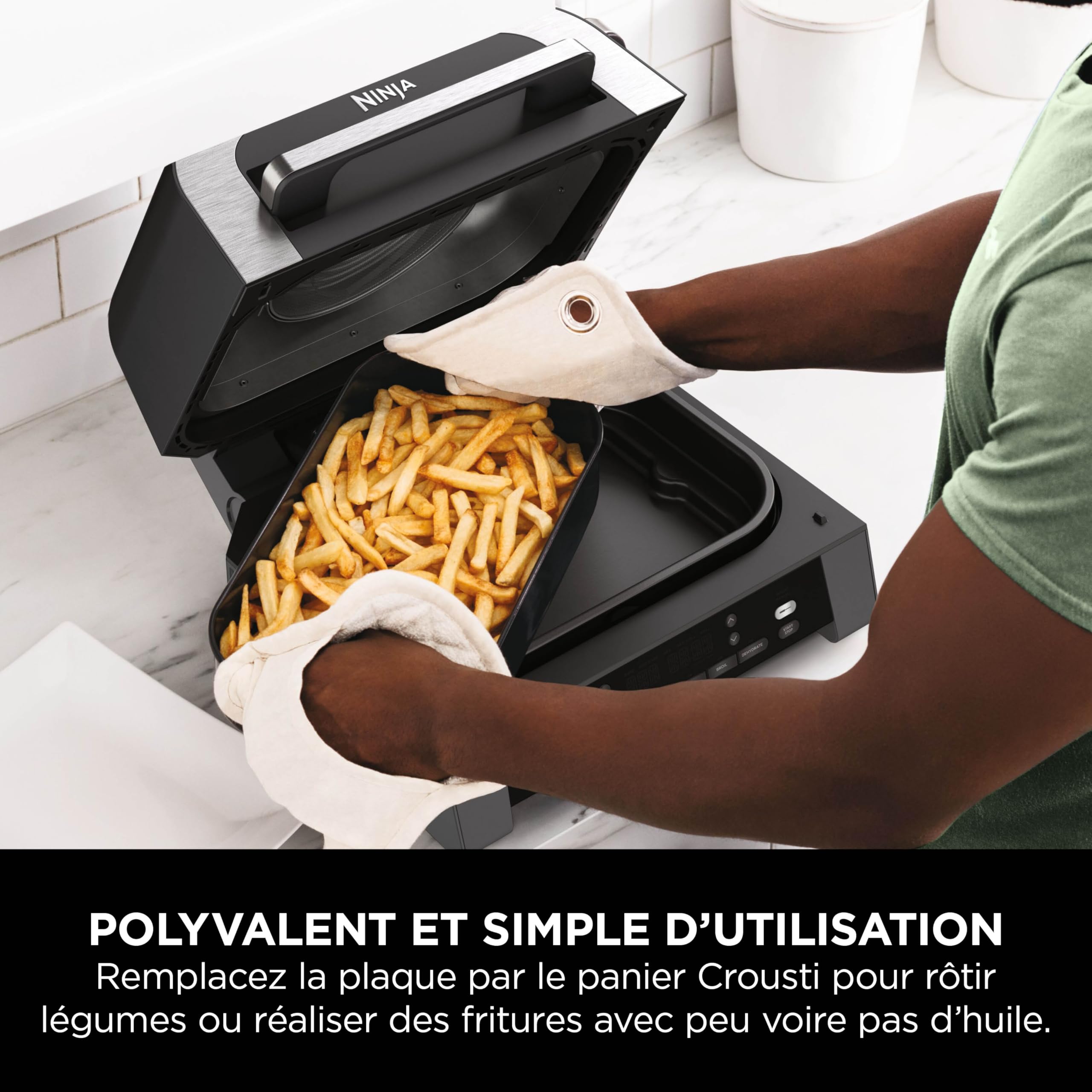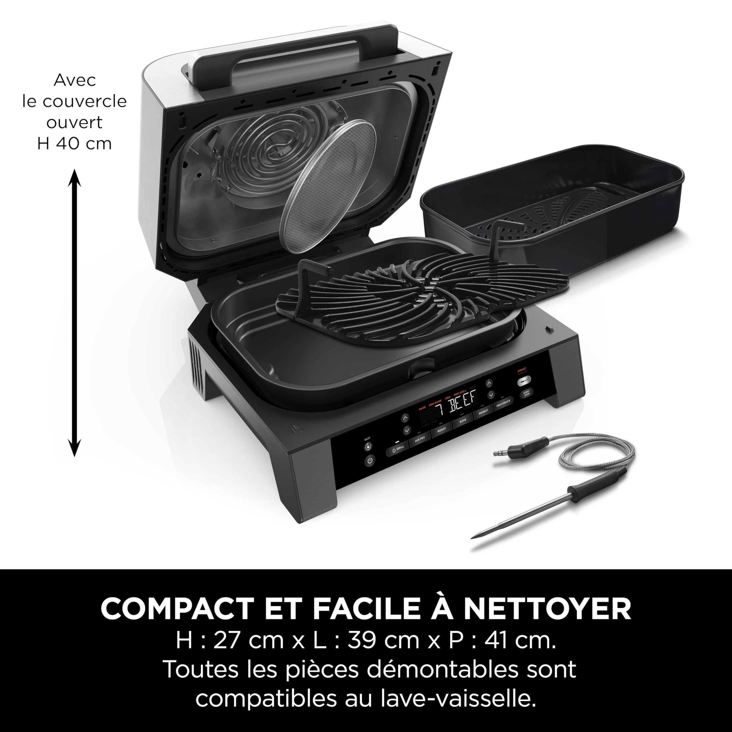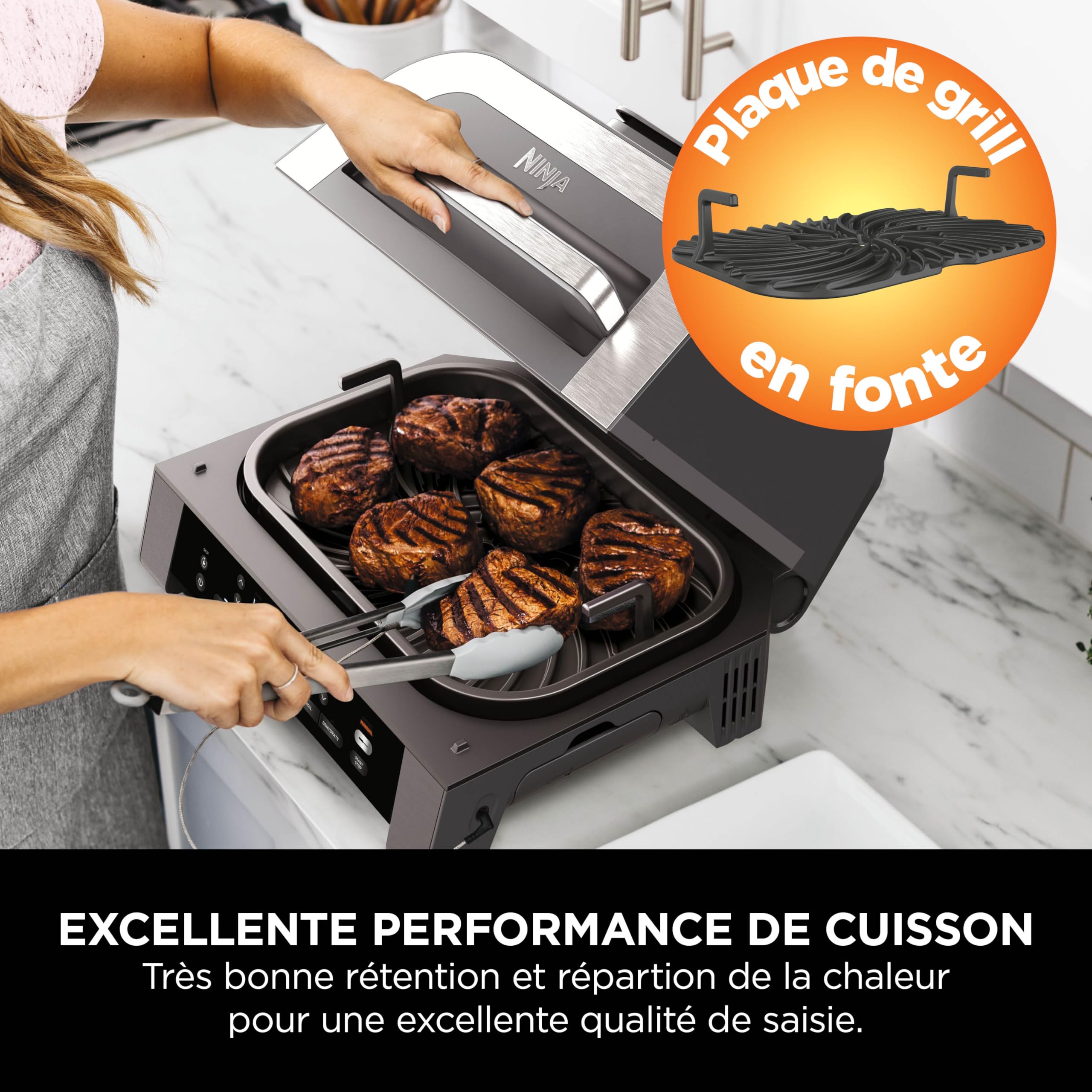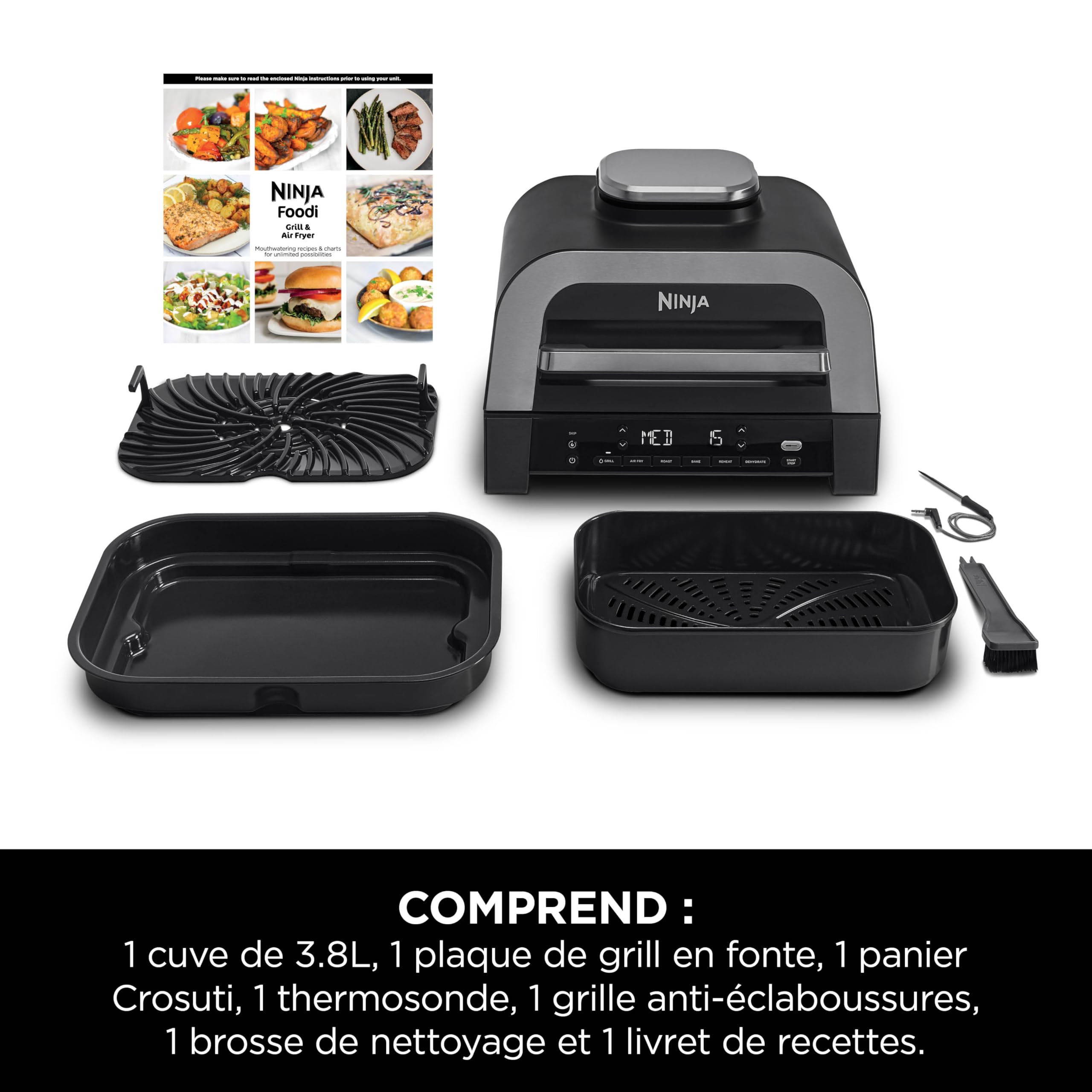 Ninja MAX 6-en-1 Grill d’intérieur et friteuse sans huile, 6 modes, cuit jusqu’à 6 hamburgers, capacité 3,8 l, faible dégagement de fumée, thermomètre