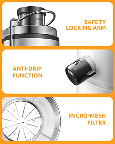 Presse agrumes avec moteur de 800 W, presse agrumes GDOR avec canal d'alimentation à grande bouche de 7,6 cm, fabricant de jus à double vitesse pour fruits et légumes, presse agrumes centrifuge avec : Cuisine et Maison