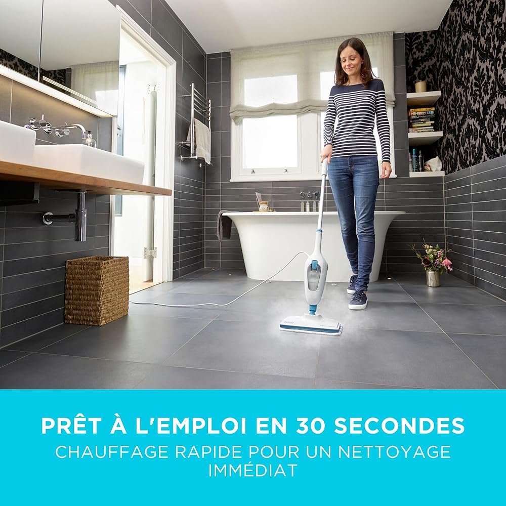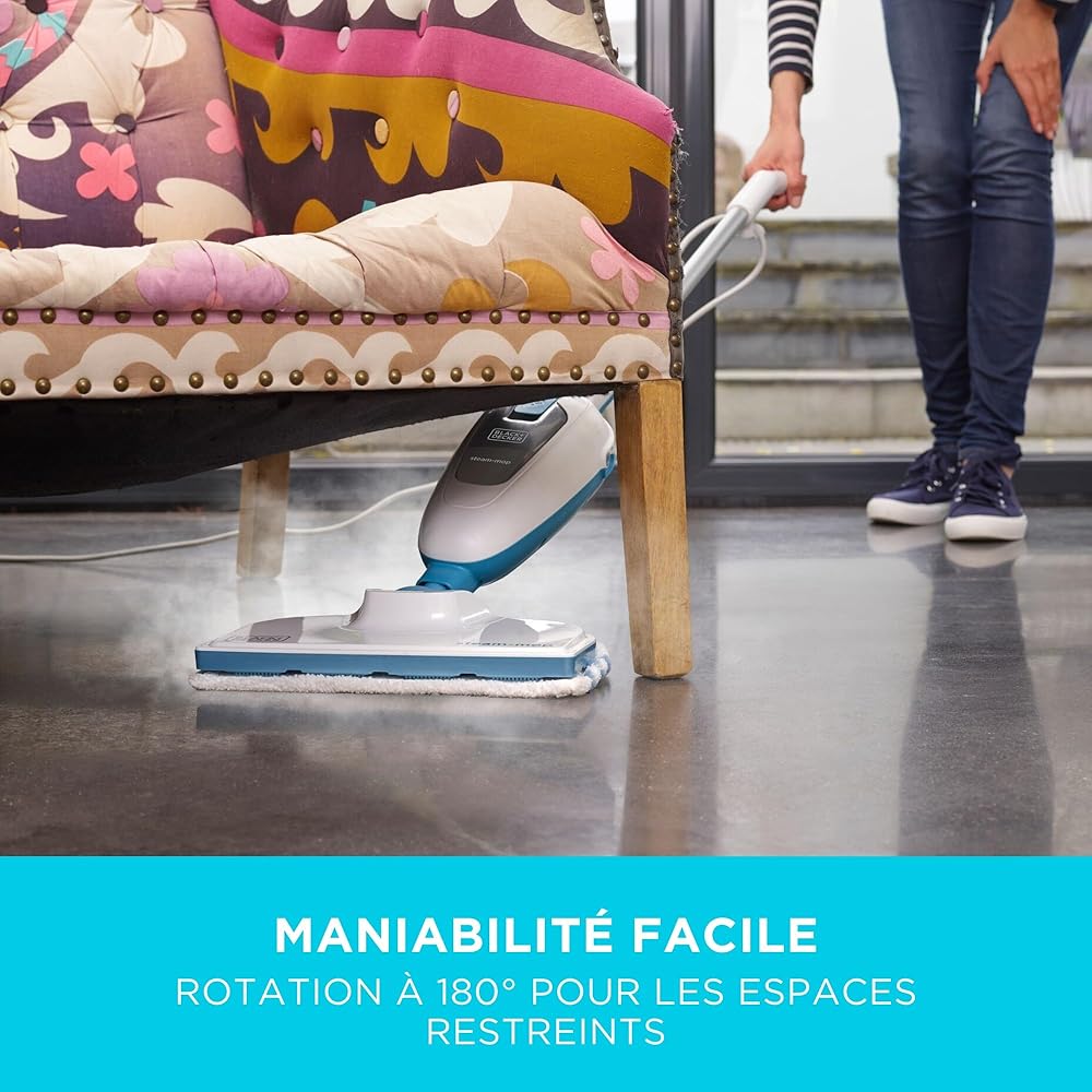 BLACK+DECKER - Balai Vapeur avec Patin Microfibre - Nettoyeur de Sol 1300W - Multi-Surfaces - Temps de Chauffe 25 sec - Tête Pivotante 180° - Réservoir 380 ml - Nettoyage Parfait - FSM13E1-QS : Cuisine et Maison