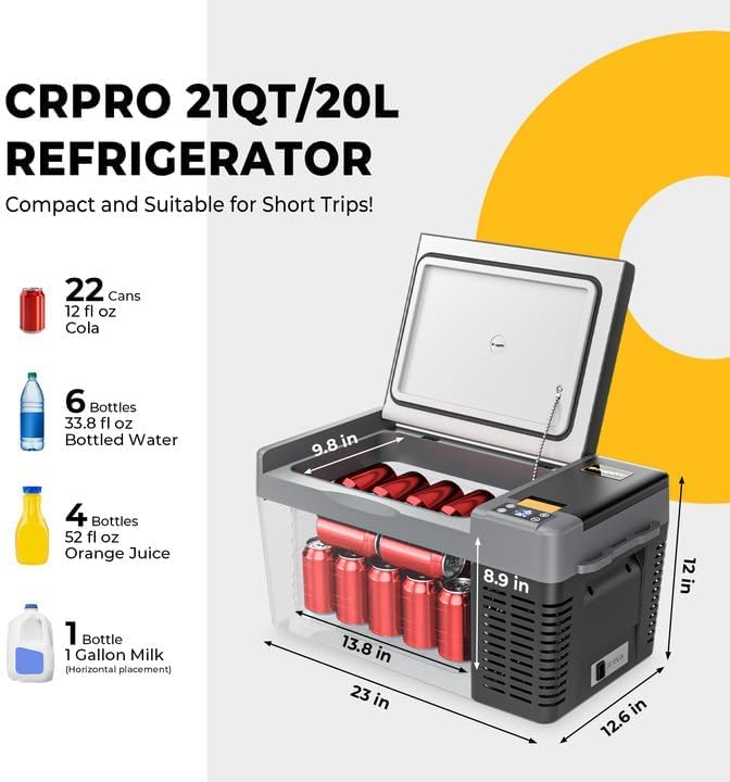 BougeRV CRPRO Glacière à Compression, Frigo Voiture 20 litres(-22°C~10°C), 12/24V DC &110-240V AC Glaciere Voiture, Frigo Compression 12v, pour voiture, camping, voyage
