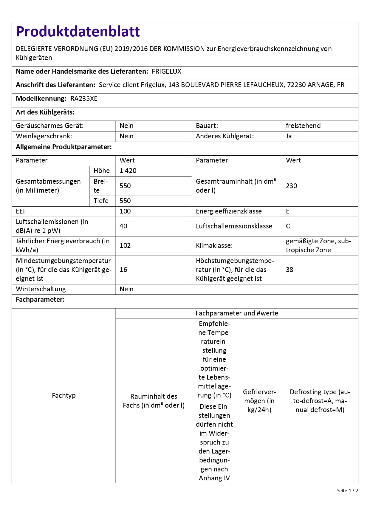 FrigeluX Réfrigérateur Armoire Look Inox RA235XE 230 litres