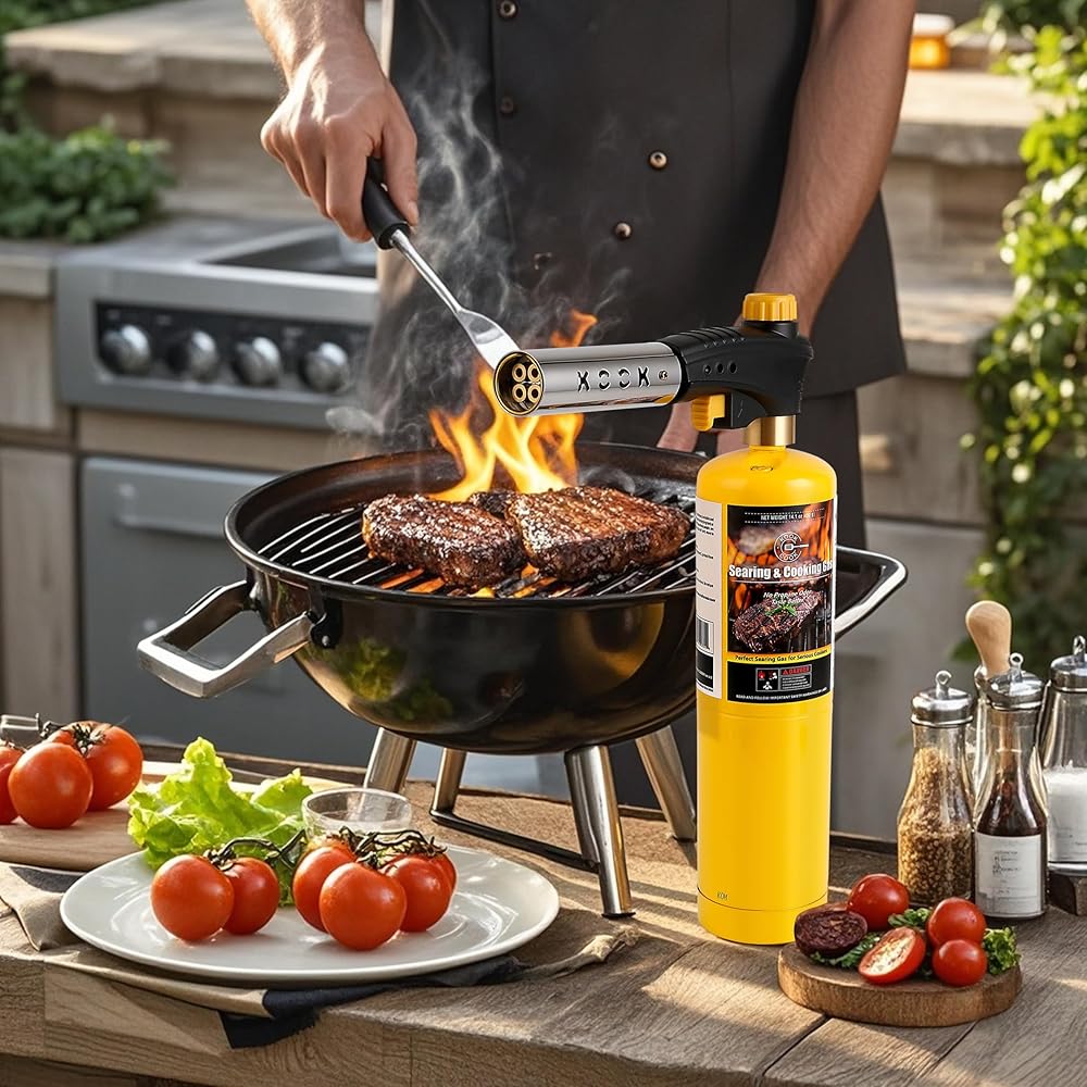 KOOKCOOK Tête de torche au propane, puissante tête de chalumeau à 4 flammes avec allumage, kit de pistolet à gaz MAPP MAP sur support de réservoir de propane de 0,5 kg pour souder, souder, braser, : Bricolage