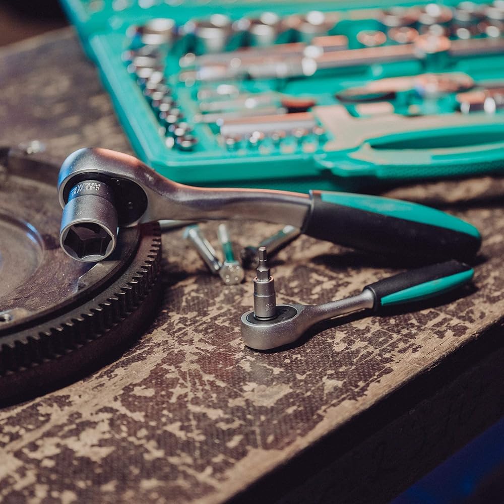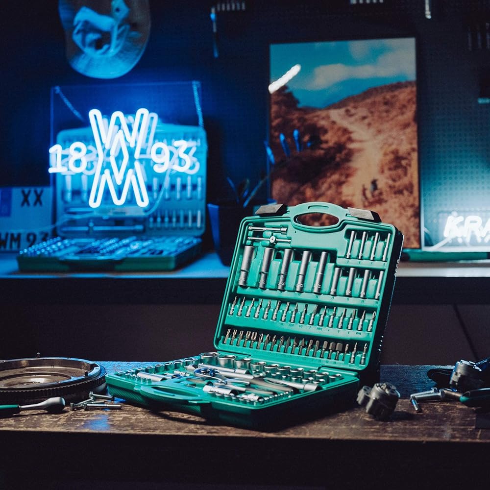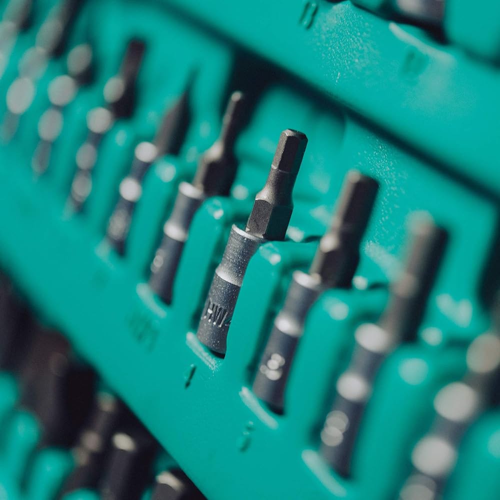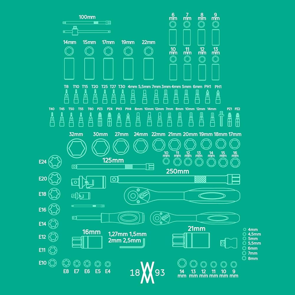 Lot douilles et cliquets 110 pièces | WIESEMANN 80126 | acier au chrome-vanadium | cliquets 1/2" et 1/4" | douilles 6 pans | vis Phillips et Pozidriv | dans un coffret : Bricolage