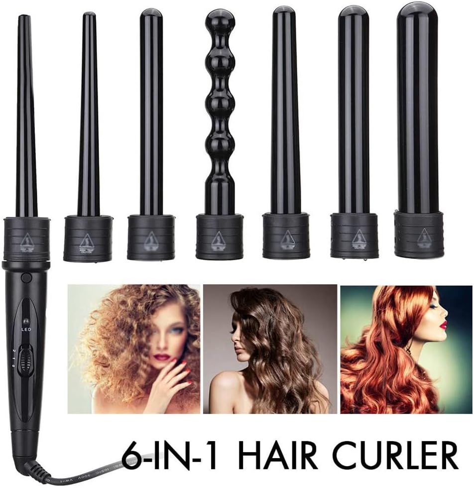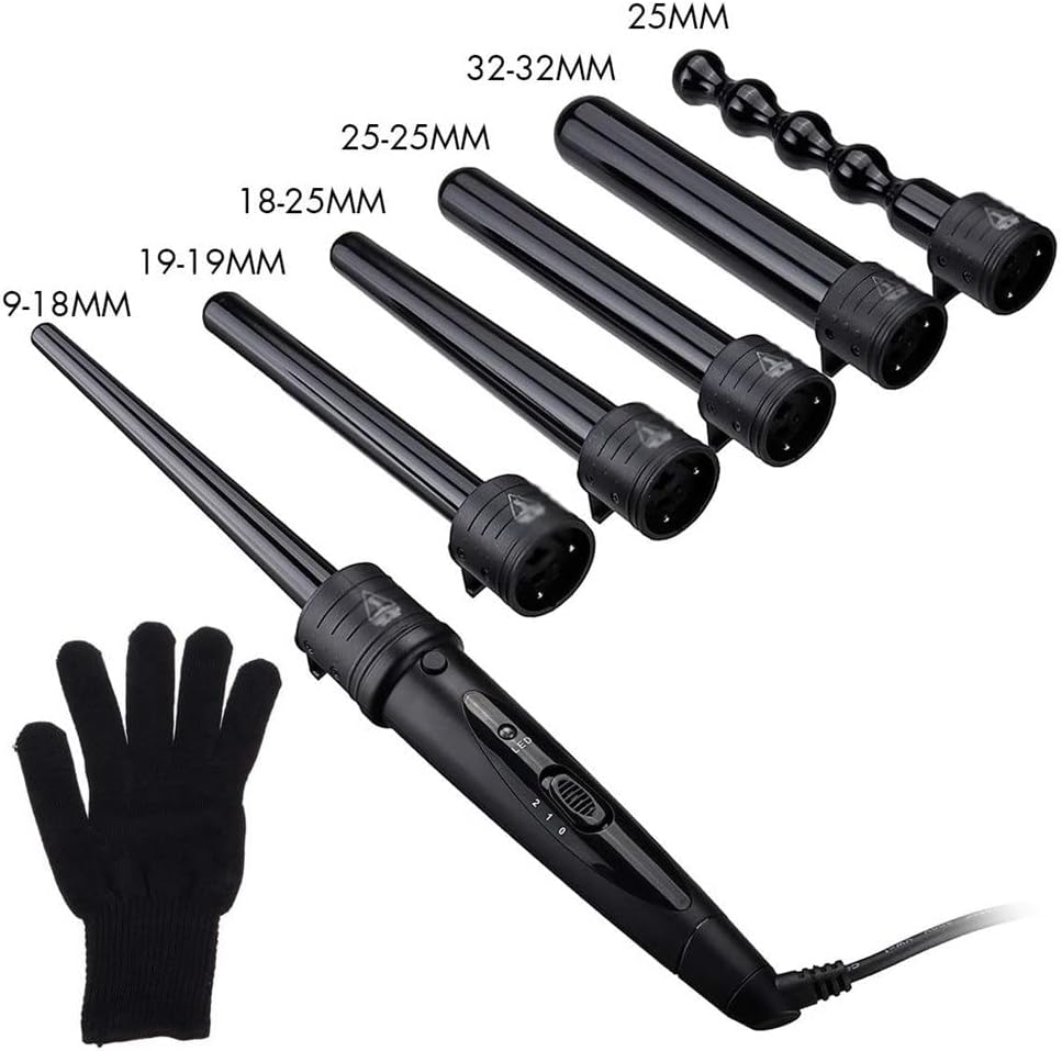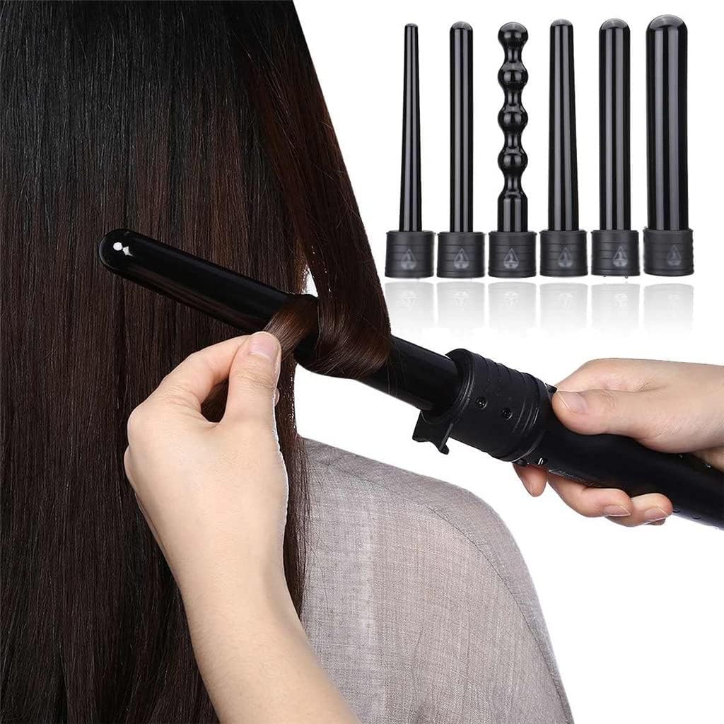 KKMNDE 6 en 1 9-32mm Interchangeable Professionnel en céramique bigoudi Rotatif Fer à friser Baguette bigoudis Soins des Cheveux Outils de Coiffure