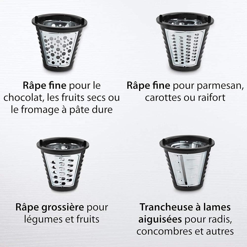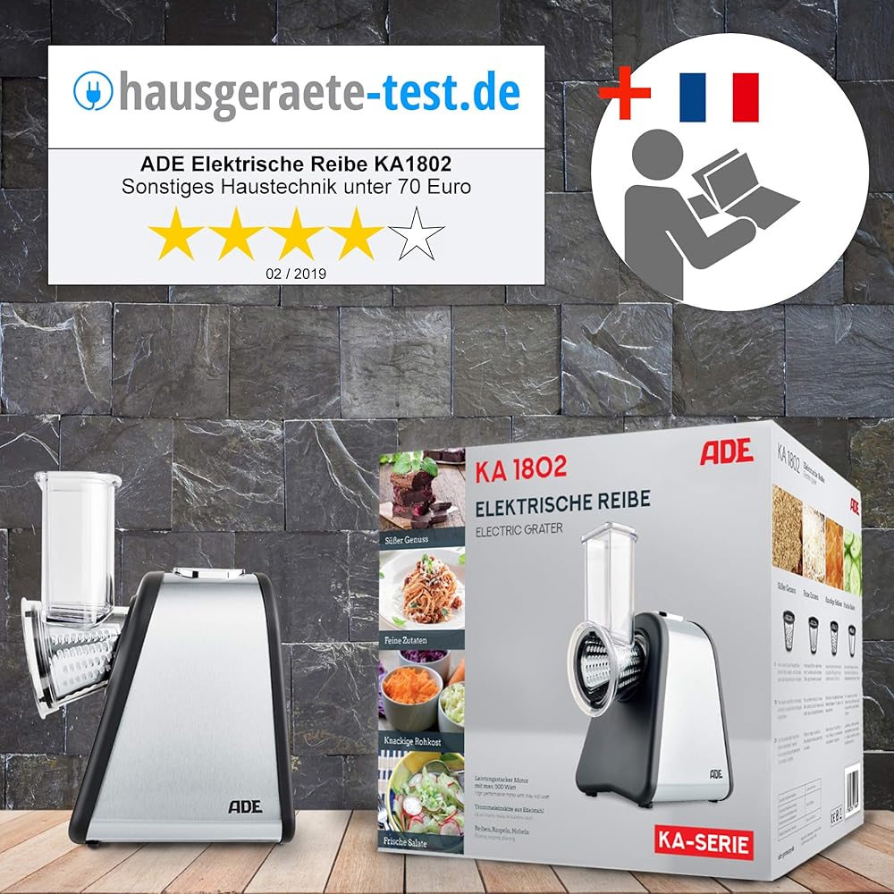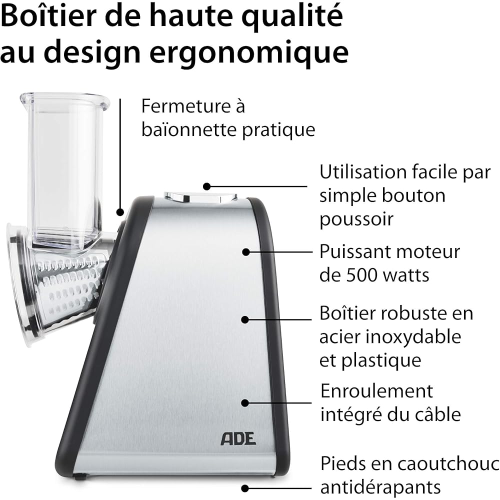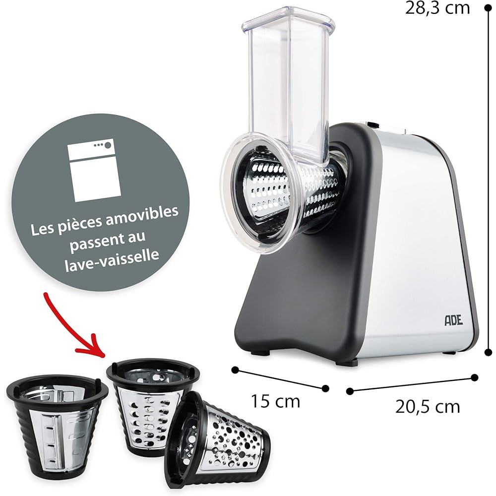 ADE Râpe de cuisine électrique | max. 500 W | découpe legumes facilment, fromage, carottes, chocolat | coupe légumes | 4 accessoires | boîtier en acier inoxydable : Cuisine et Maison