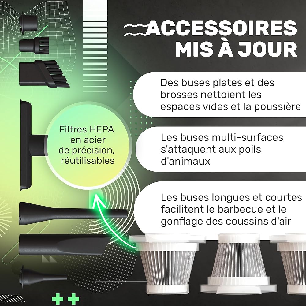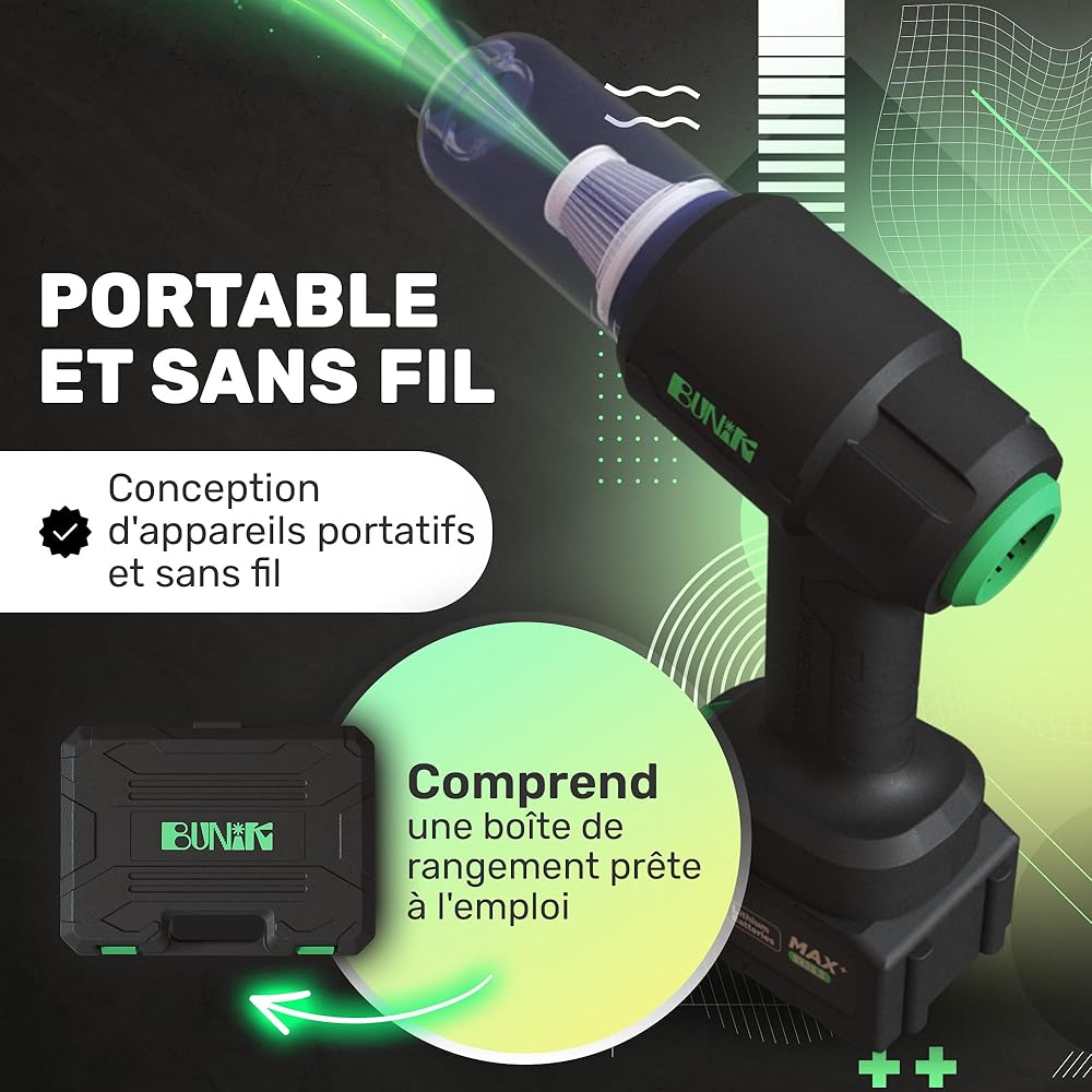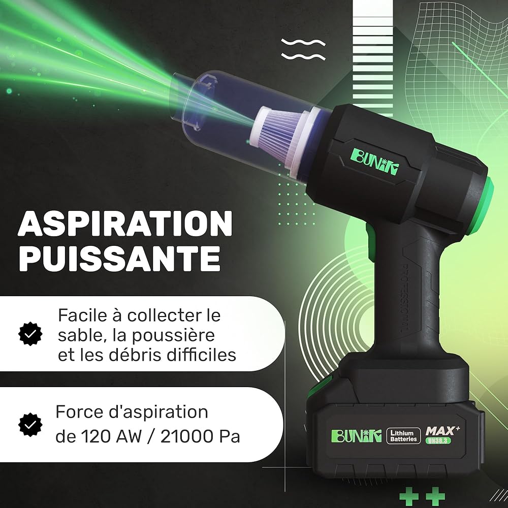 BUNIK Aspirateur Puissant 21000Pa pour Voiture - Aspirateur sans Fil avec autonomie 37 Min, Compact et performant, Accessoires Inclus pour Voiture et Maison : Cuisine et Maison
