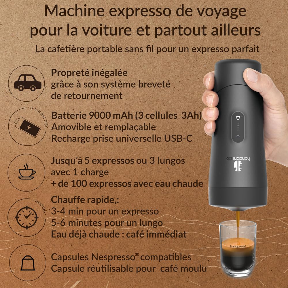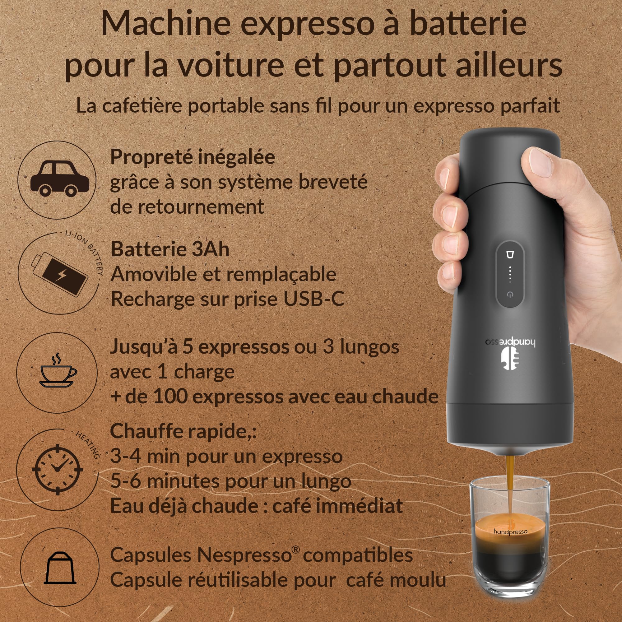 Handpresso Auto | Machine à café expresso portable 19 bars pour voiture et voyage | compatible capsule expresso/capsule réutilisable | Cafetière de vo