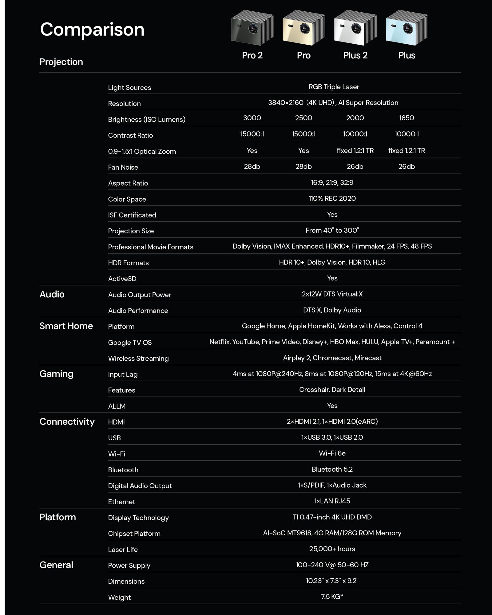Valerion VisionMaster Pro Vidéoprojecteur Laser Triple 4K, 2500 ISO Lumens, Contraste 15000:1, Zoom Optique 0,9-1,5X, IMAX Enhanced, HDR10+, Faible La