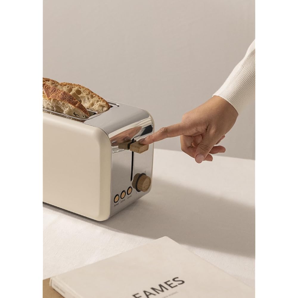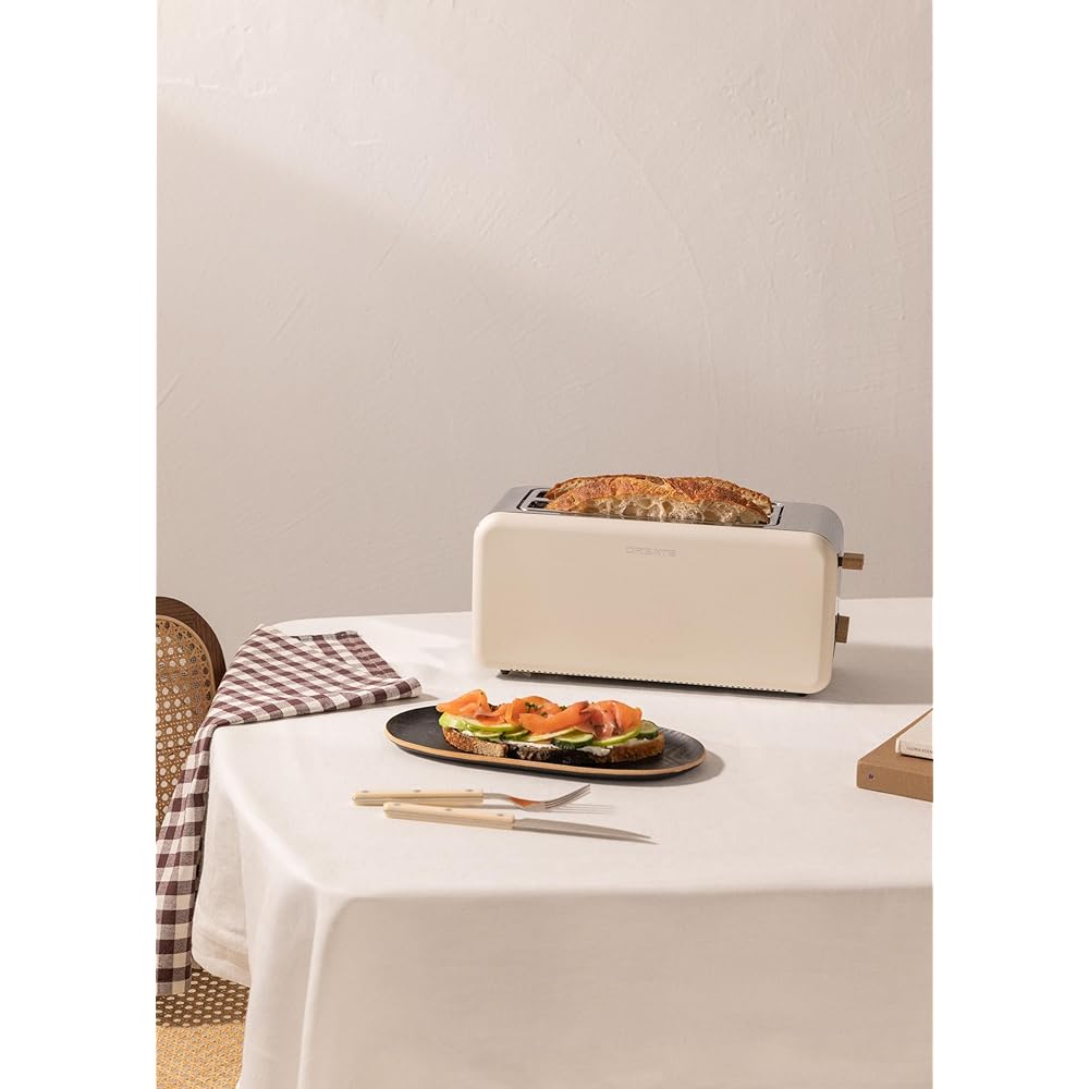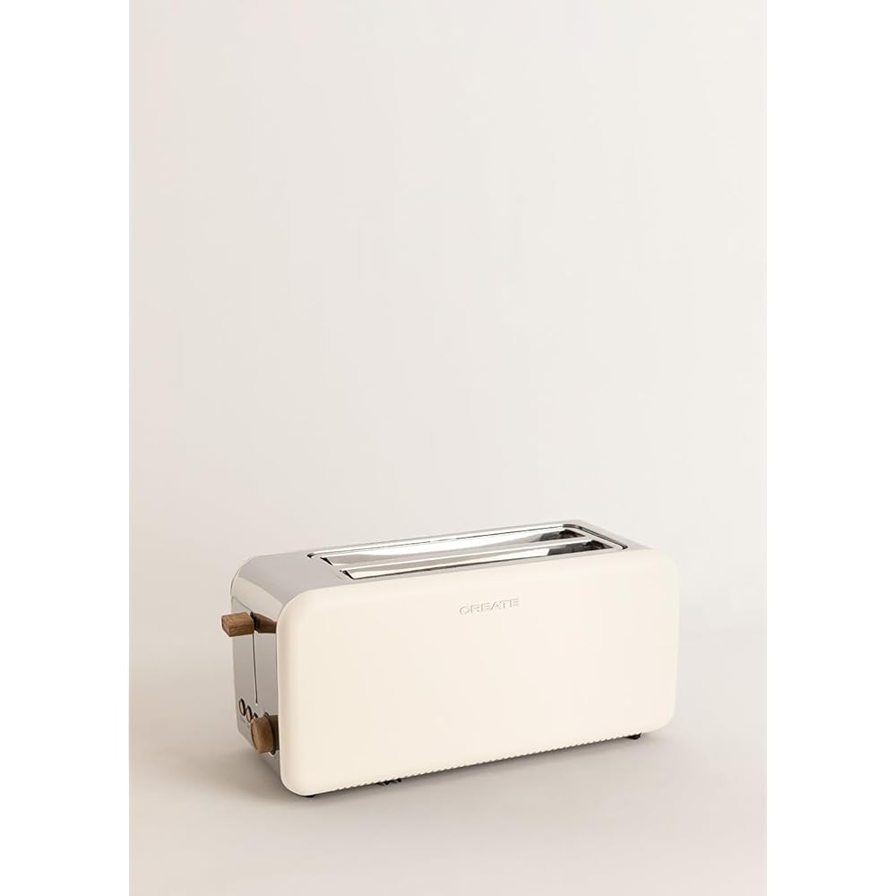 CREATE/TOAST RETRO XL/Grille-pain Blanc cassé / 6 niveaux de puissance, tiroir ramasse-miettes, thermostat, décongélation, réchauffage, 2 fentes pour tranches larges, 1500W : Cuisine et Maison