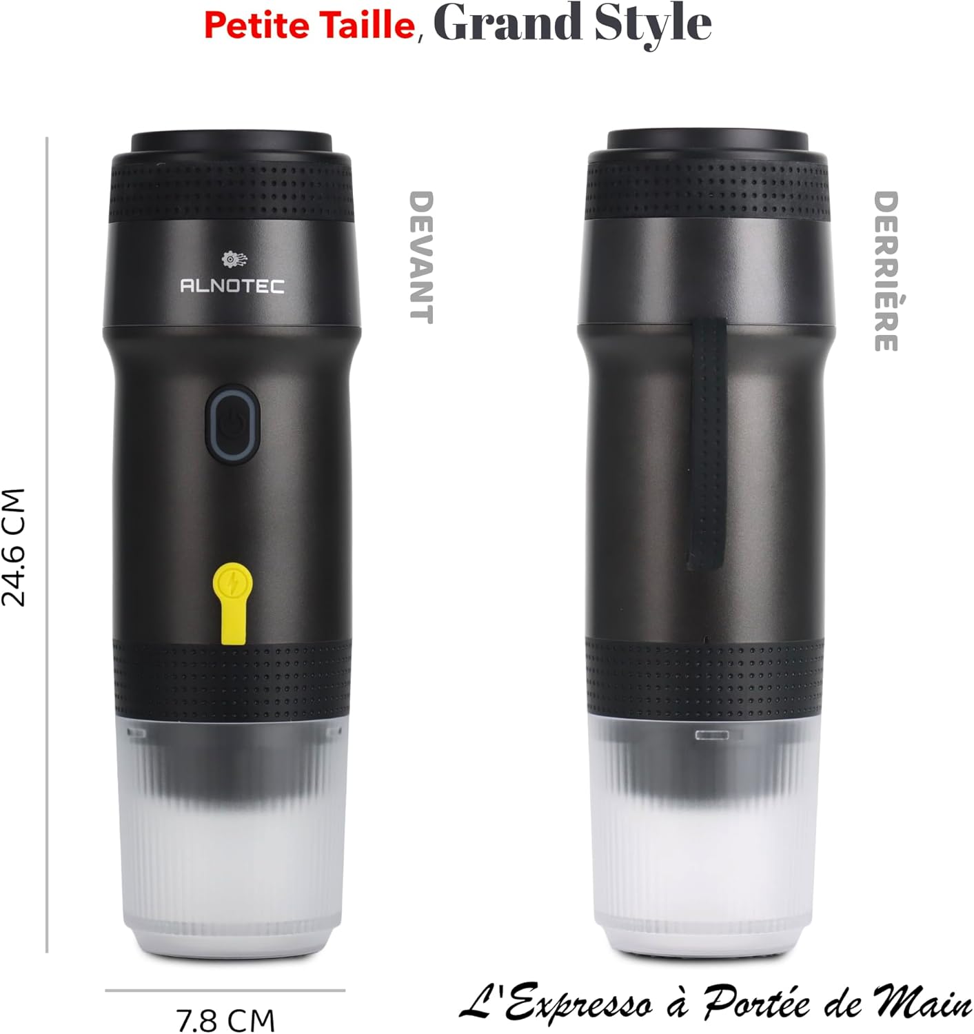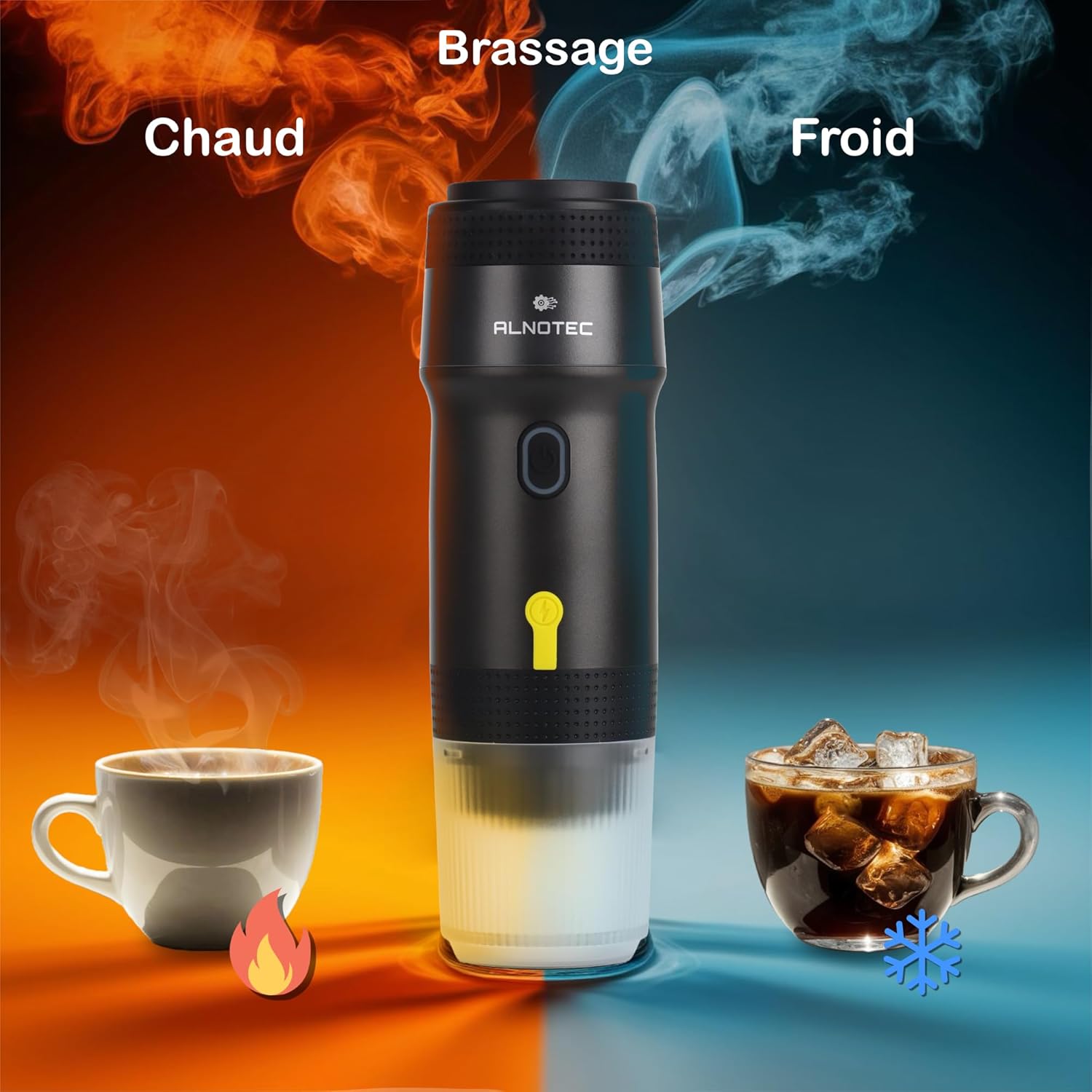 ALNOTEC-Machine à Café Portable-Machine à expresso portable-électrique-Auto Chauffante-Compatible Capsules NES DG & Café Moulu-Chargeurs 220V,USB et Voiture-Brassage Froid/Chaud-cafetière rechargeable
