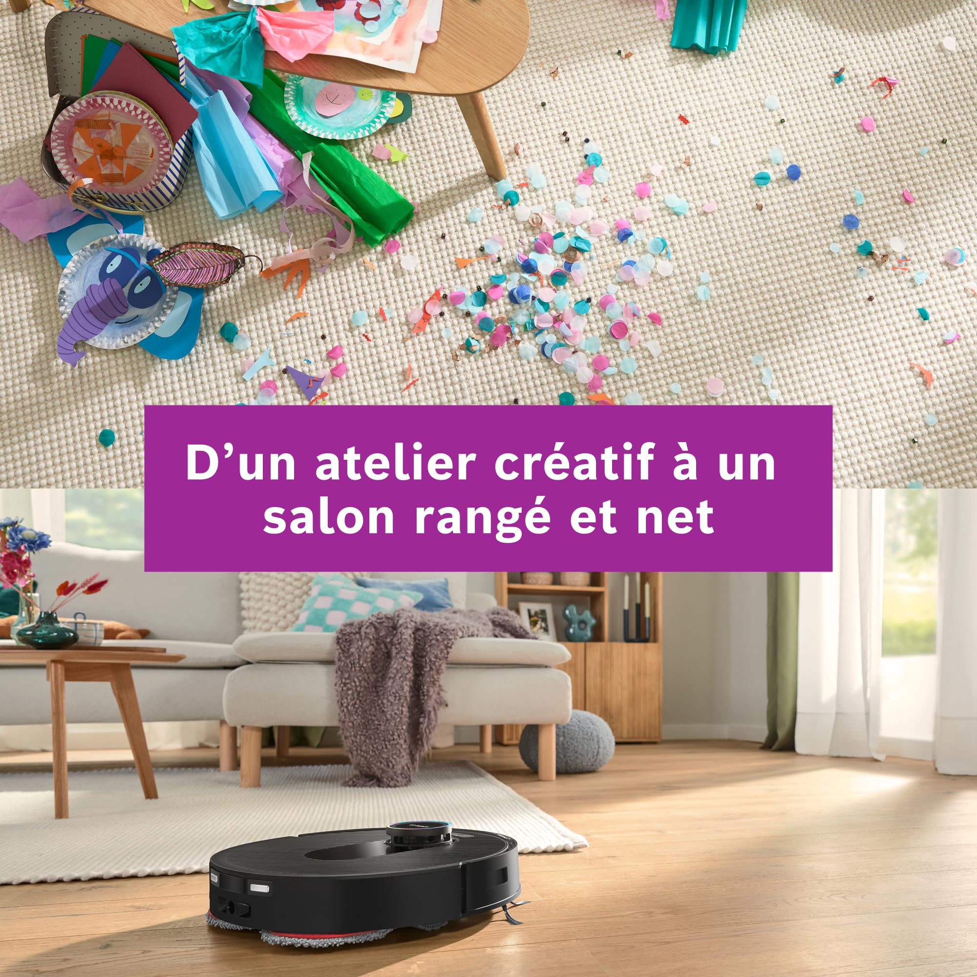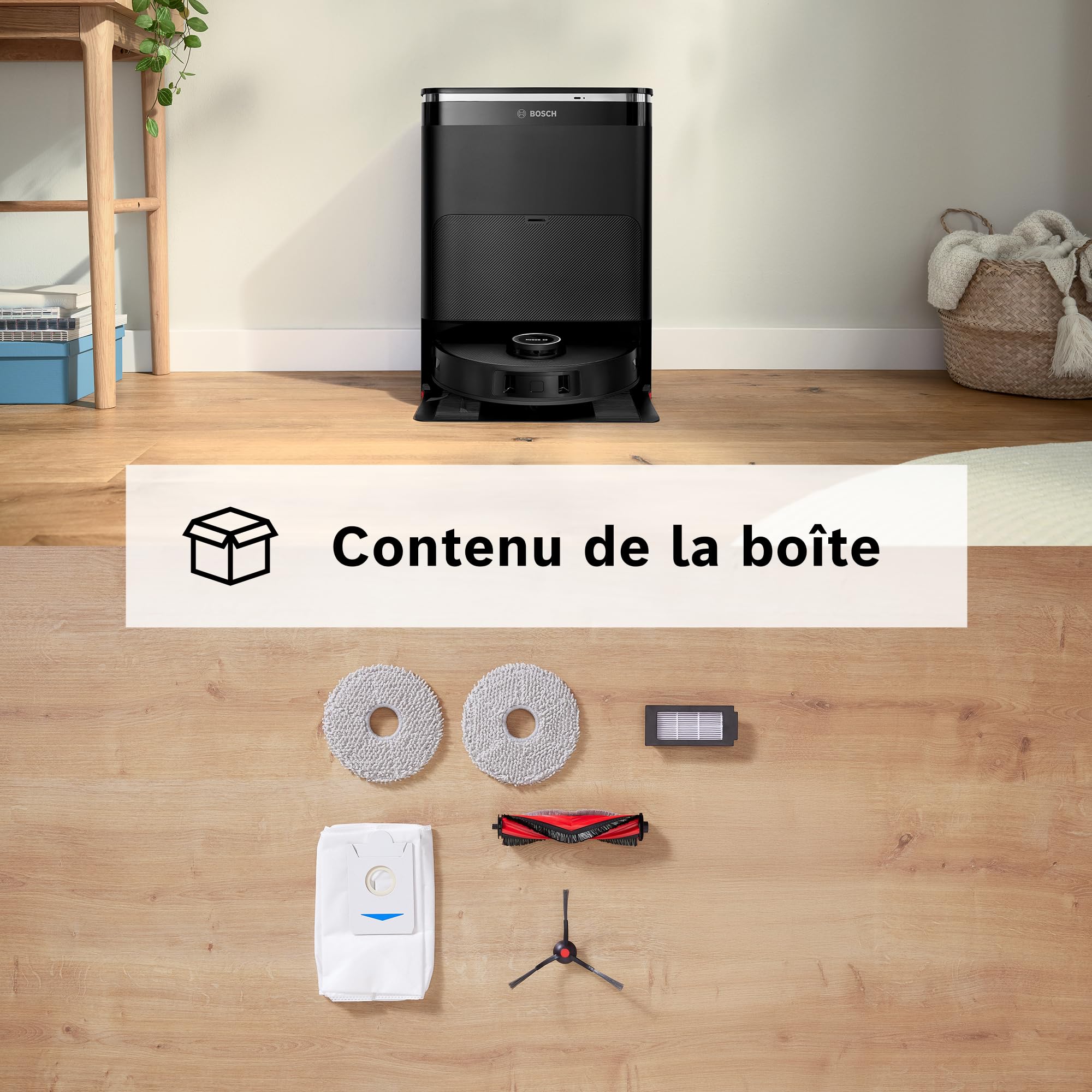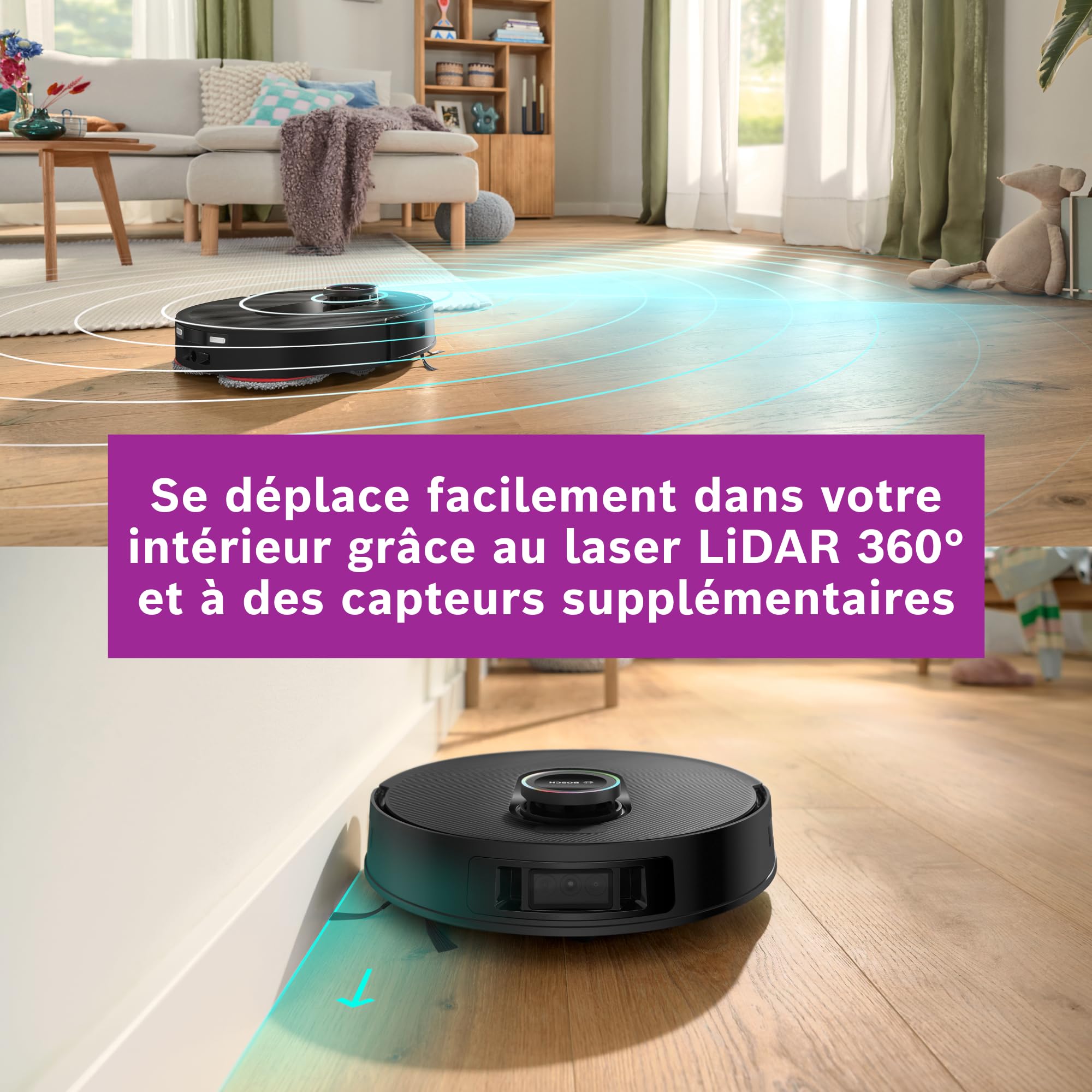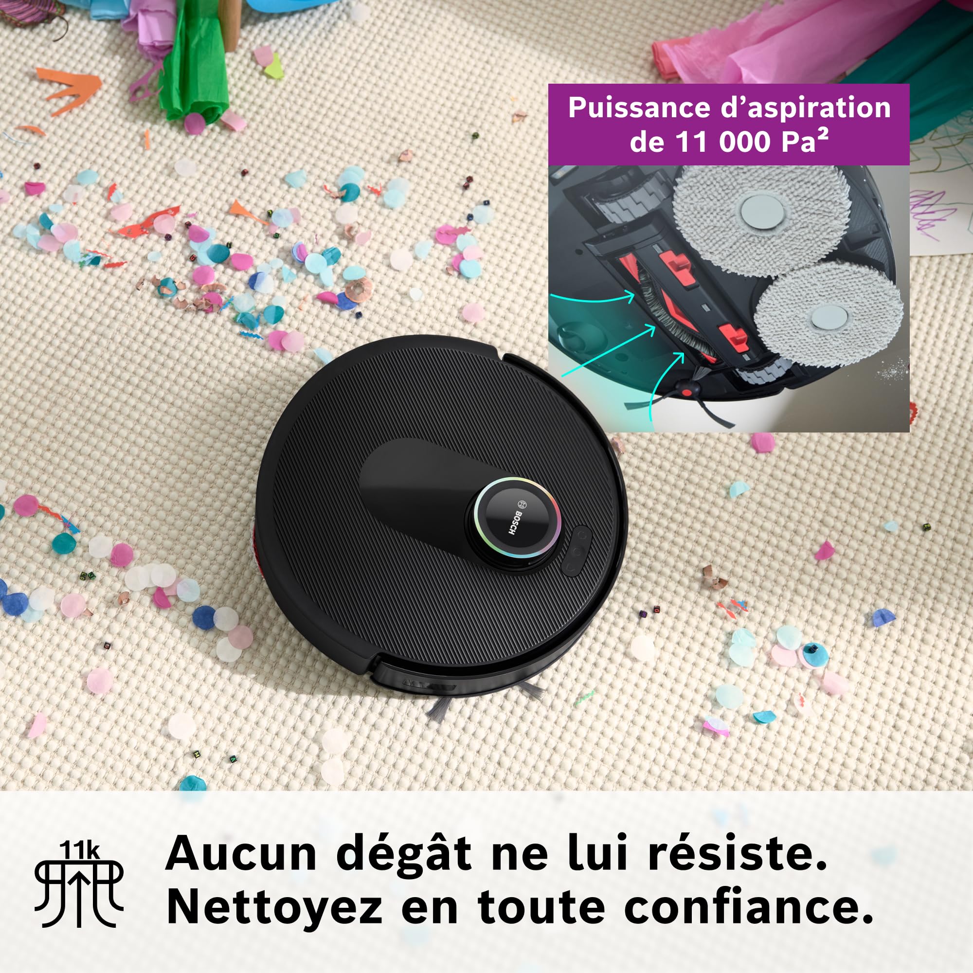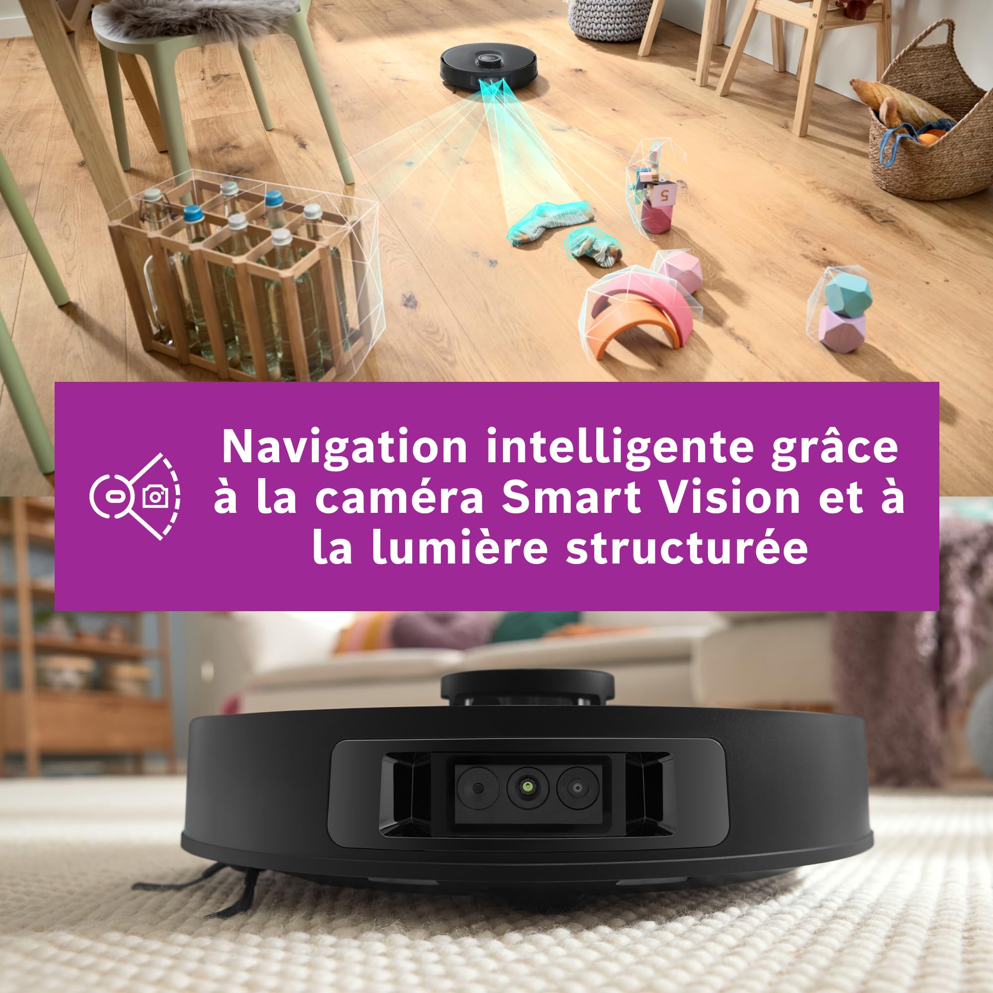 Bosch Spotless Max Cam BCRDW3BX, Robot aspirateur-Laveur avec caméra Smart Vision, serpillère rotative, 11 000 Pa, Station de Service sèche-Humide, Ap