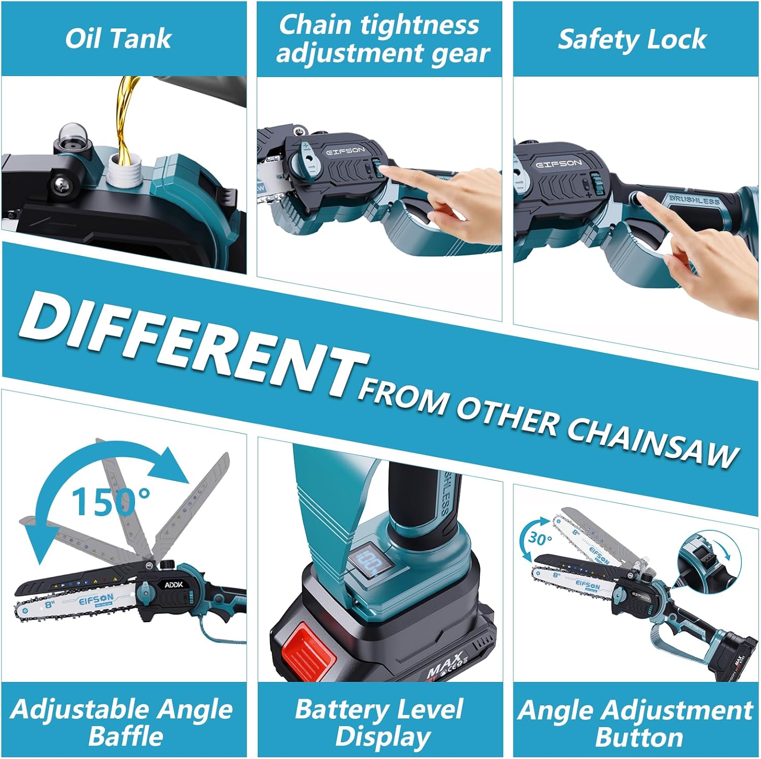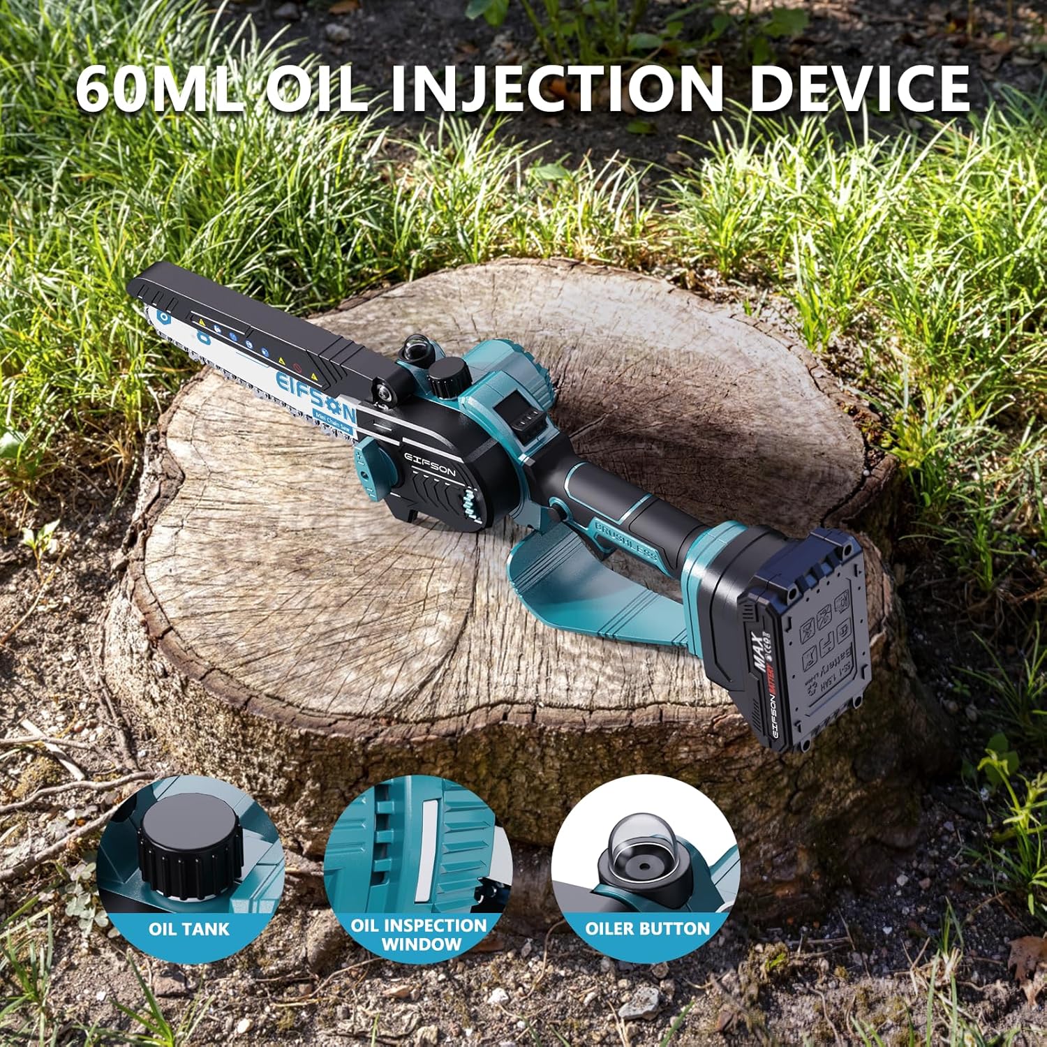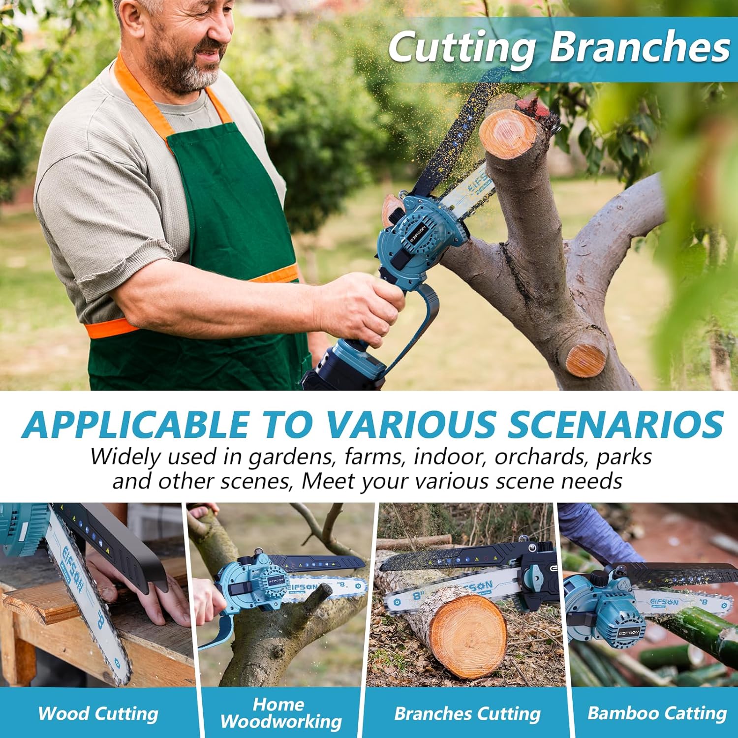Mini Trononneuse sans fil 8 pouces,1100W Brushless Trononneuse à Batterie avec 2x2.0Ah,2Chane,Vitesse de chane 0-28M/S Trononneuse électrique Pour les arbres,Terrasse,Maison&Jardin