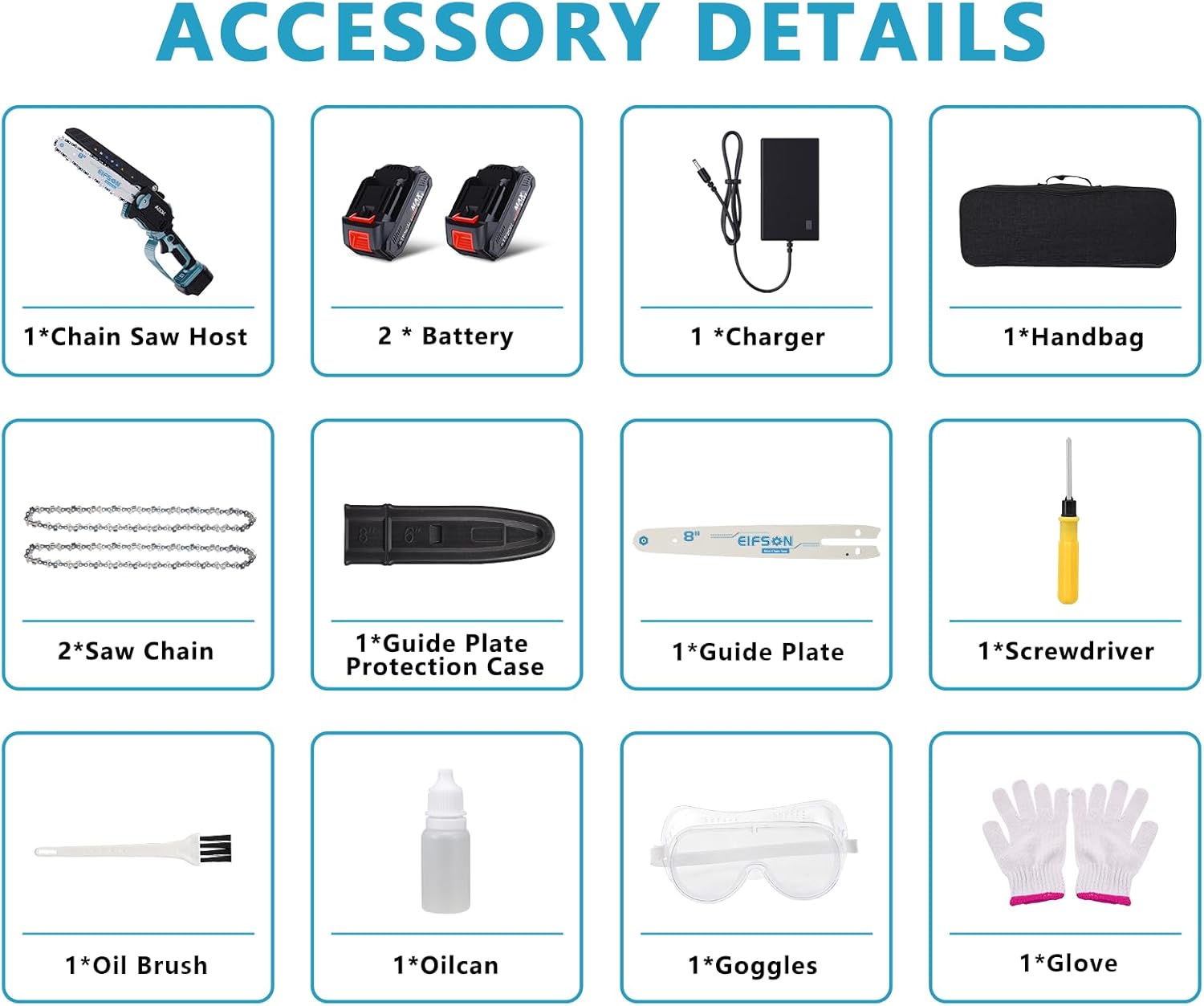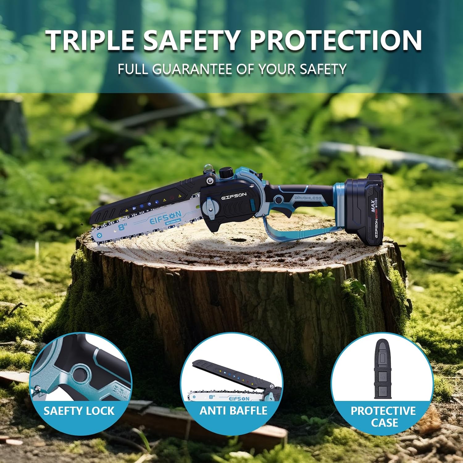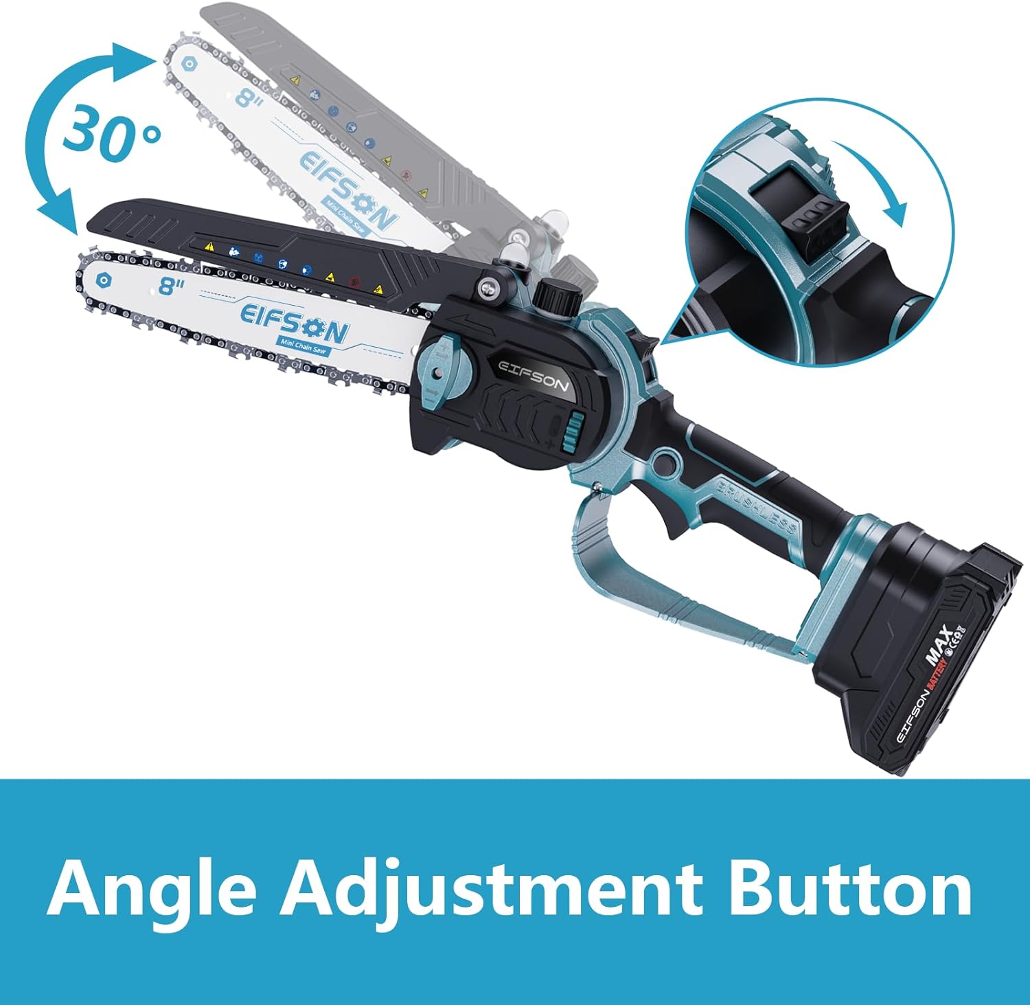 Mini Trononneuse sans fil 8 pouces,1100W Brushless Trononneuse à Batterie avec 2x2.0Ah,2Chane,Vitesse de chane 0-28M/S Trononneuse électrique Pour les arbres,Terrasse,Maison&Jardin