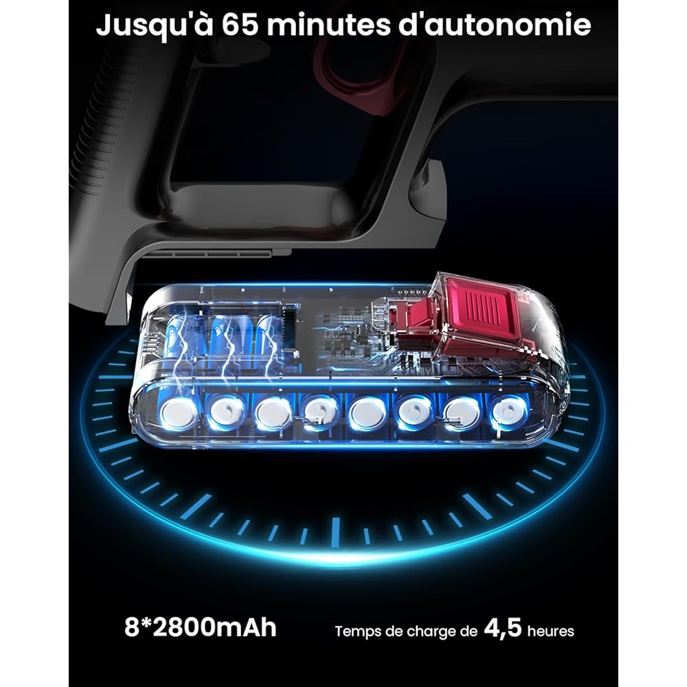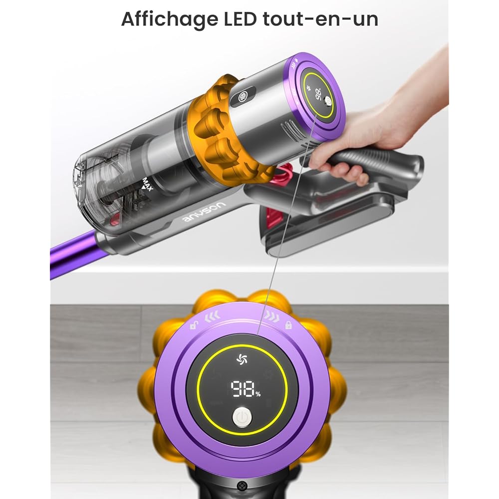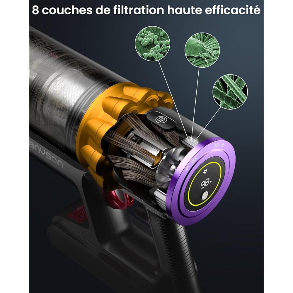 ANYSON 45Kpa/550W/70 Minutes Aspirateur Balai sans Fil,Aspirateur sans Fil Ecran Tactile,1,6L Capacité,8 Système de Filtration de Niveau,Aspirateur balais pour Sols Durs/Les Poils d'animaux/Tapis : Cuisine et Maison