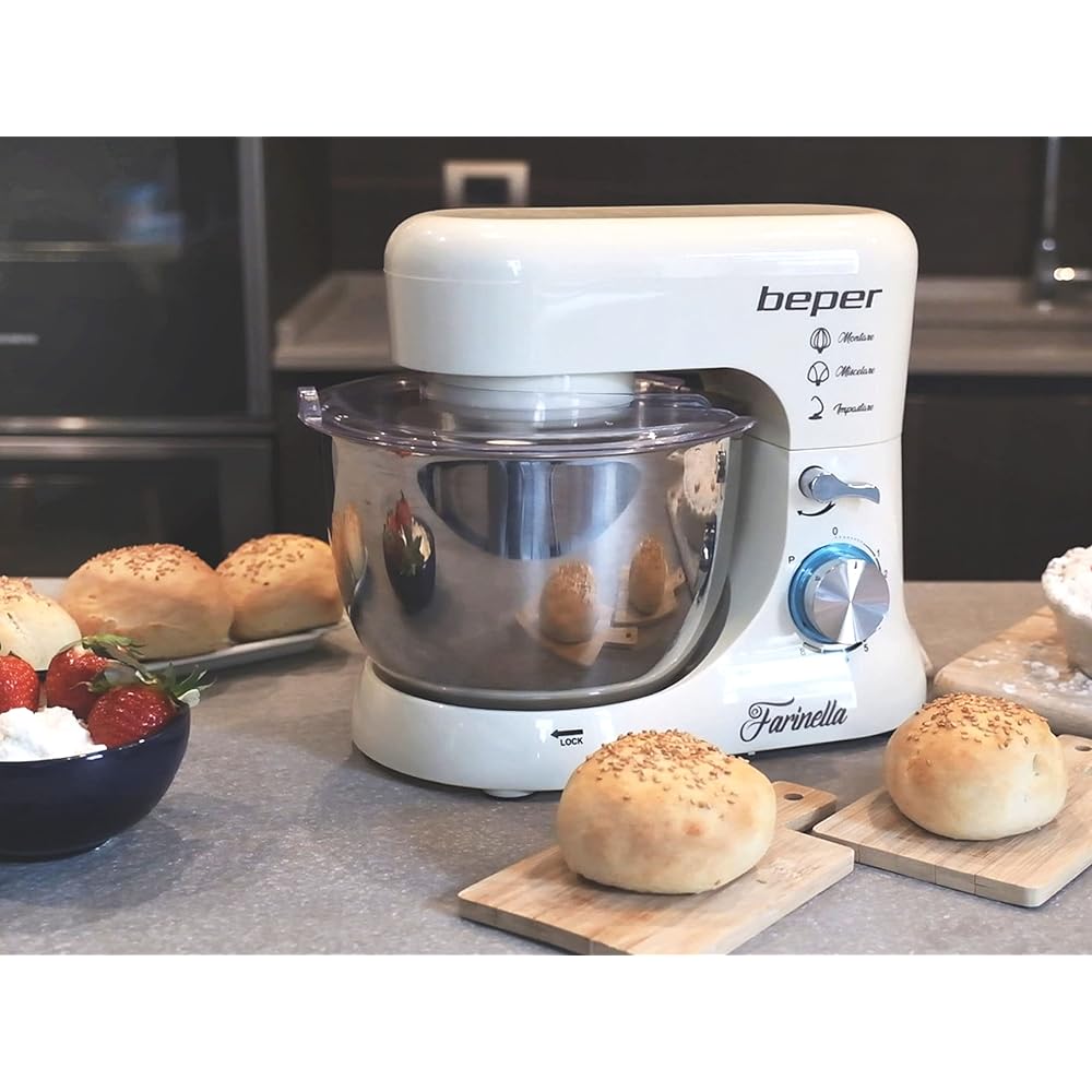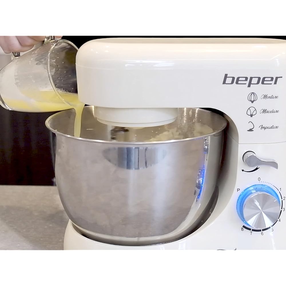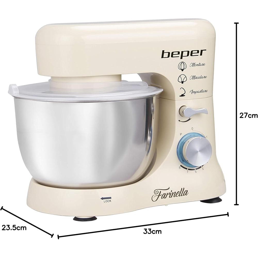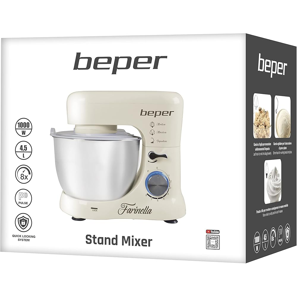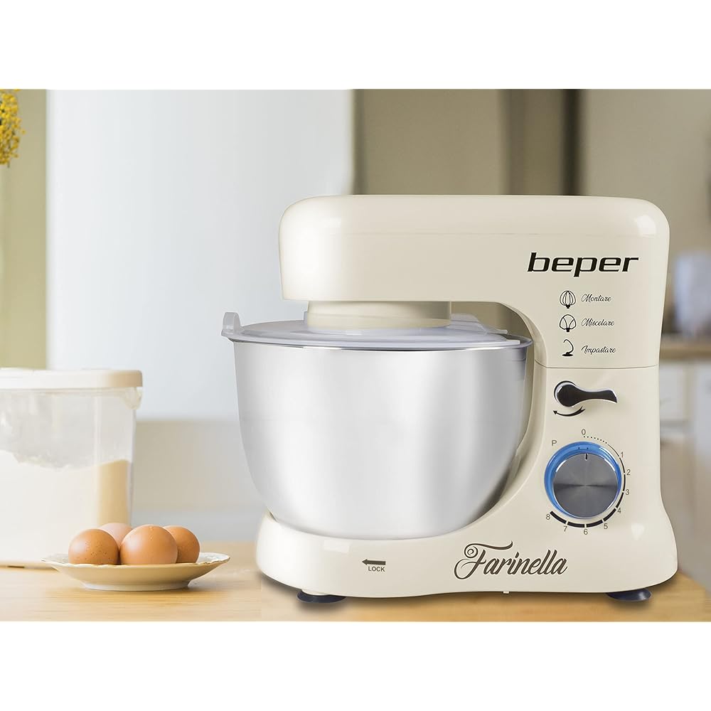 Beper BP.200 Robot pâtissier planétaire, puissance 1000 W, récipient en acier inoxydable de 4,5 L, pour pétrir, amalgamer et monter à neige, couleur crème : Cuisine et Maison