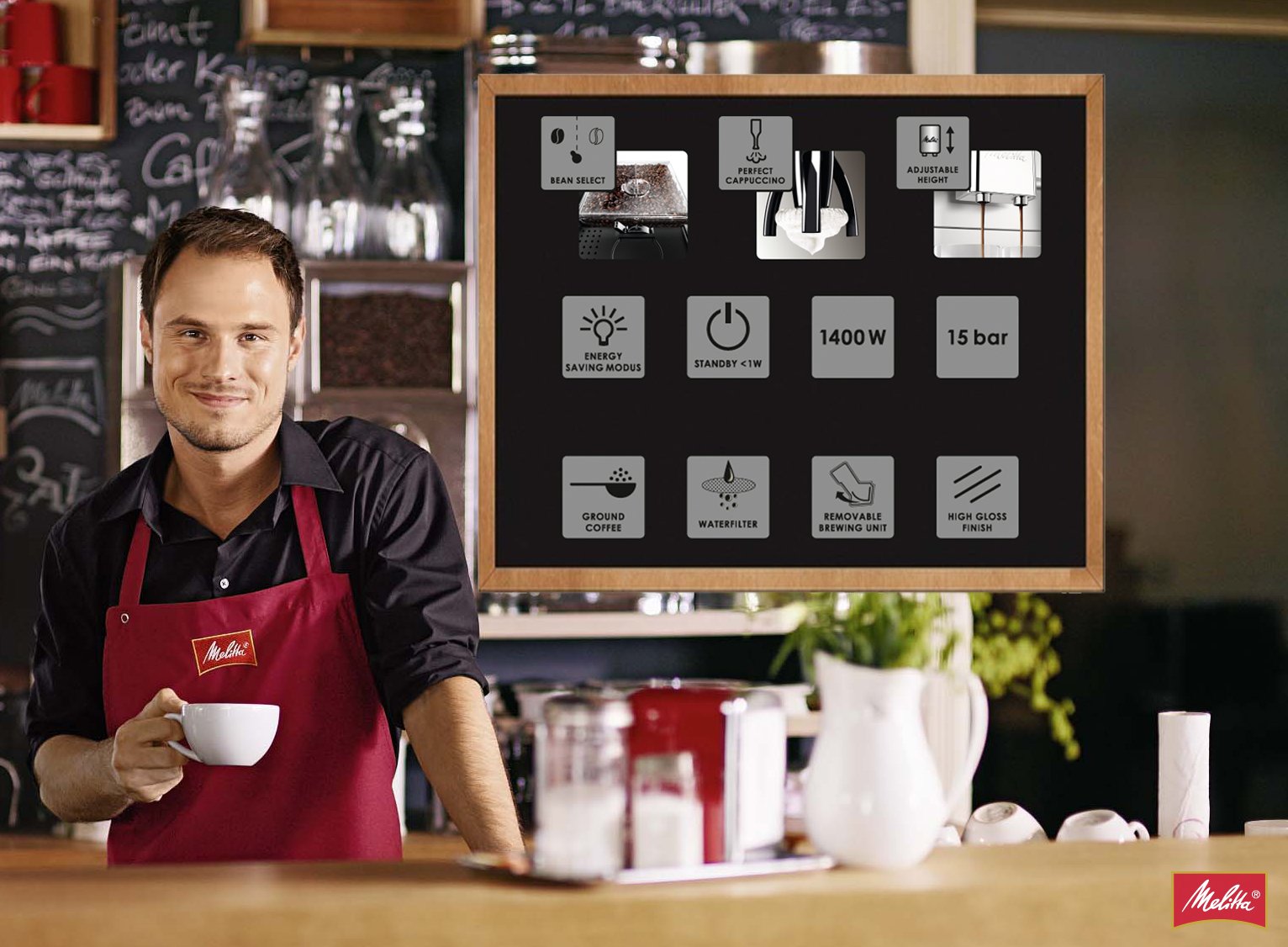 Melitta E 960-107 Caffeo Bistro- Machine Automatique à Café Expresso- Cappuccino- Argent- 15 bars