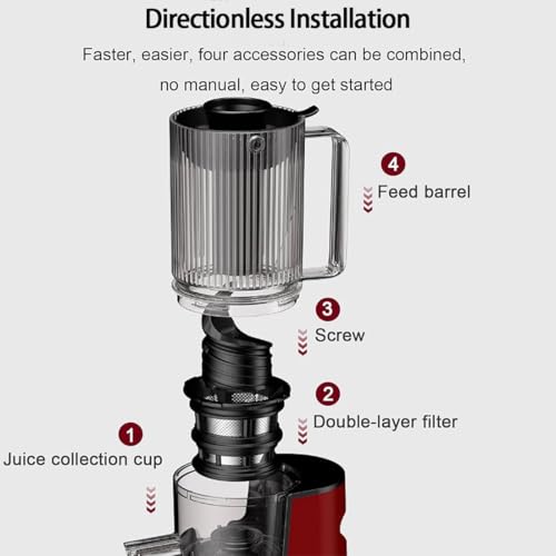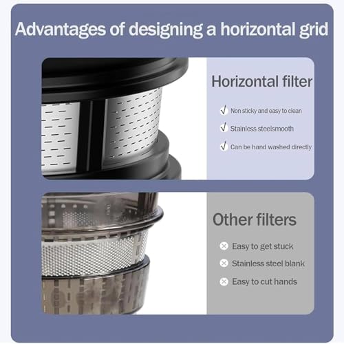 Presse Agrumes à Mastication Lente, Presse Agrumes à Froid 250 W 1400 ML avec 2 Doubles Couches de Filtre, 1 Tasse de récupération de jus/Lies, Presse Agrumes séparateur de pulpe Amovible avec Brosse : Cuisine et Maison