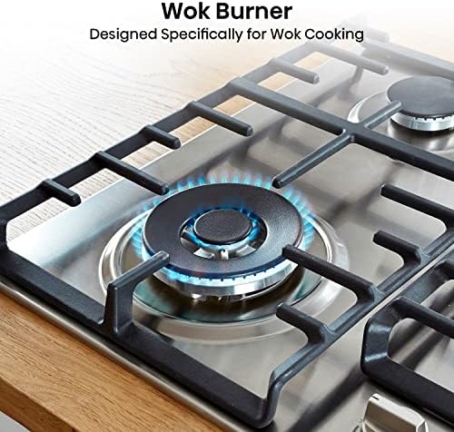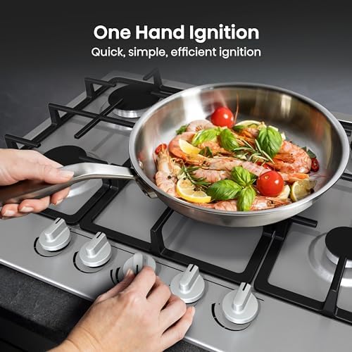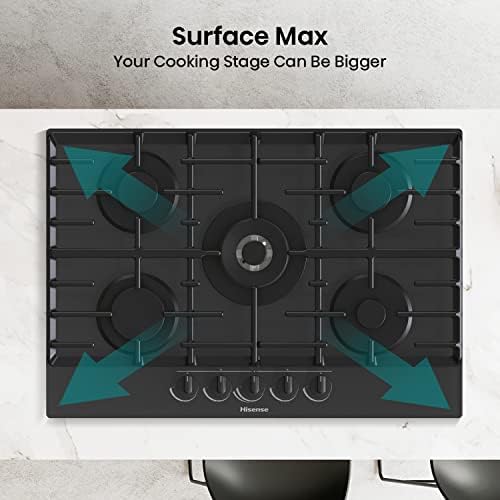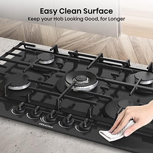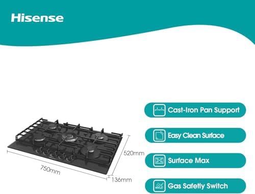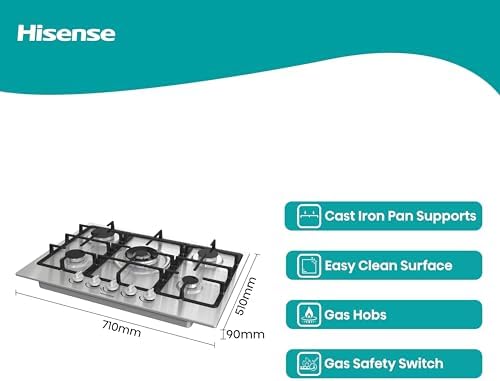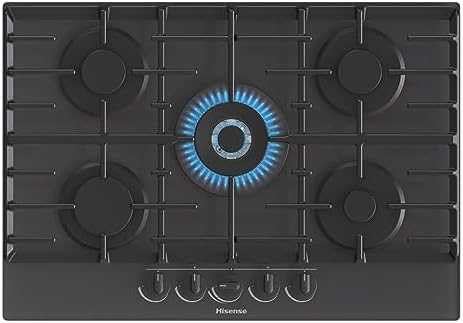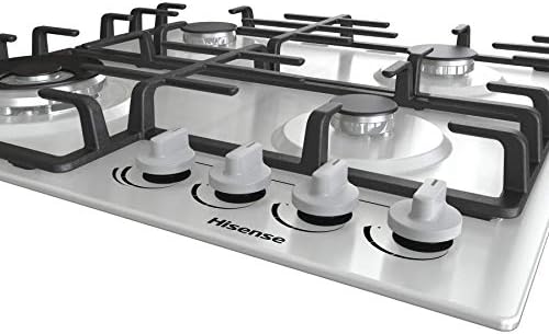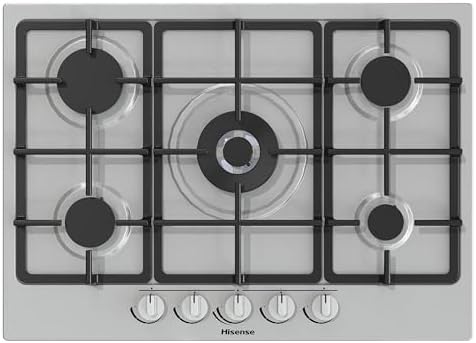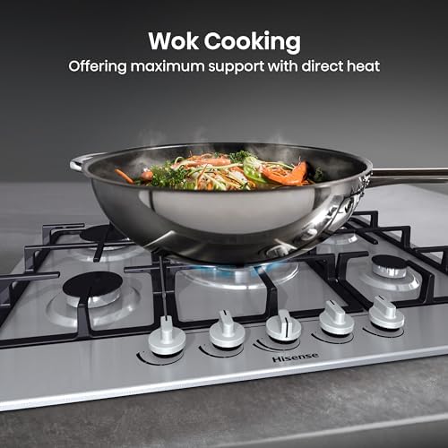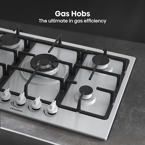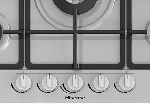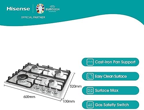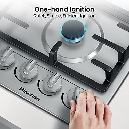 Hisense GM663XB Plaque de cuisson à gaz, 4 zones de cuisson, largeur 60 cm, brûleur wok double couronne et grilles en fonte, allumage intégré, anti empreintes digitales en acier inoxydable : Gros électroménager