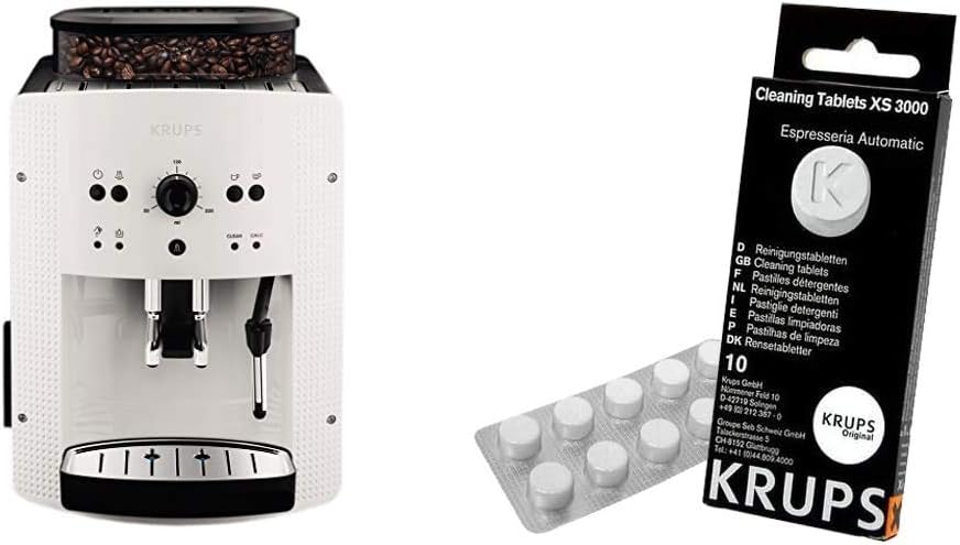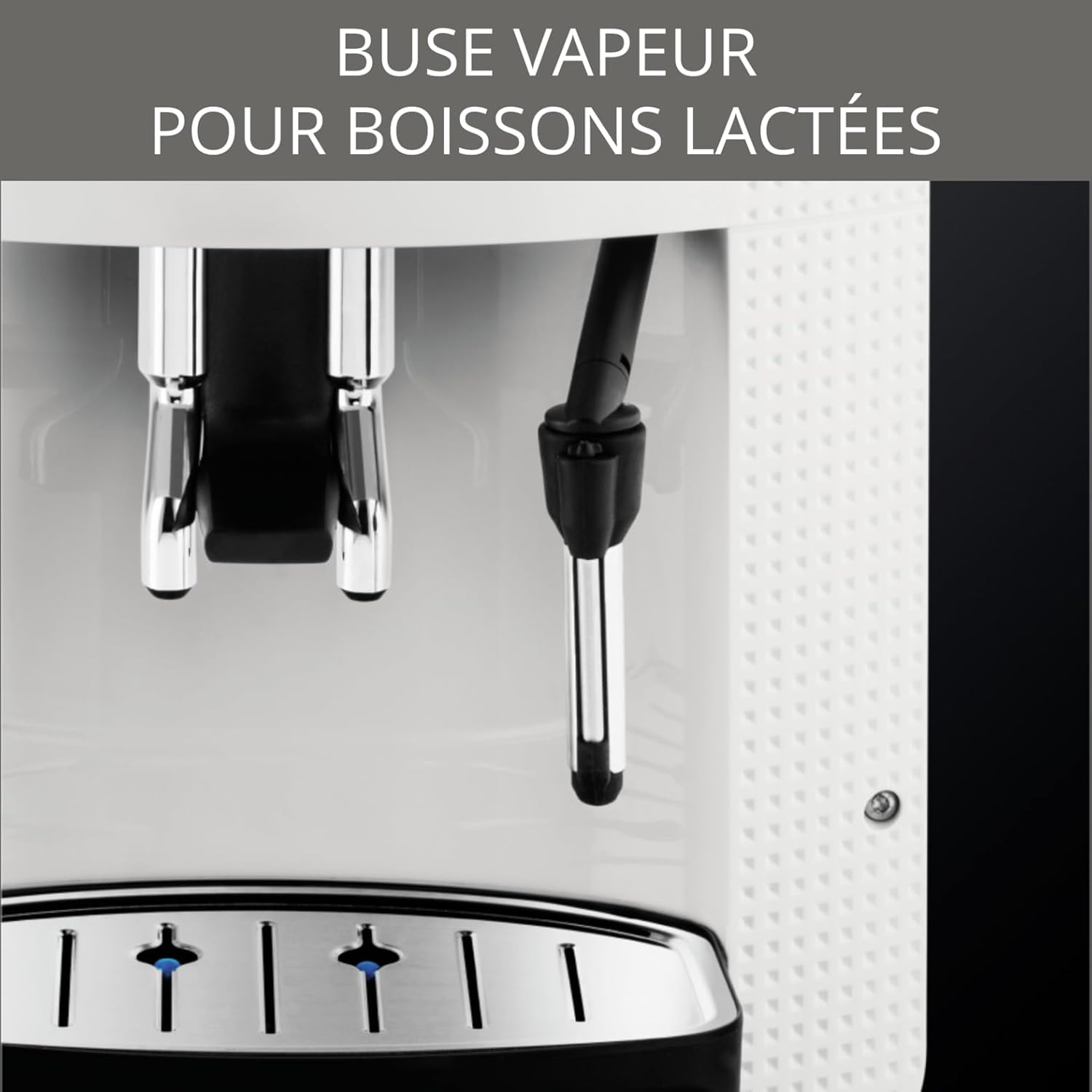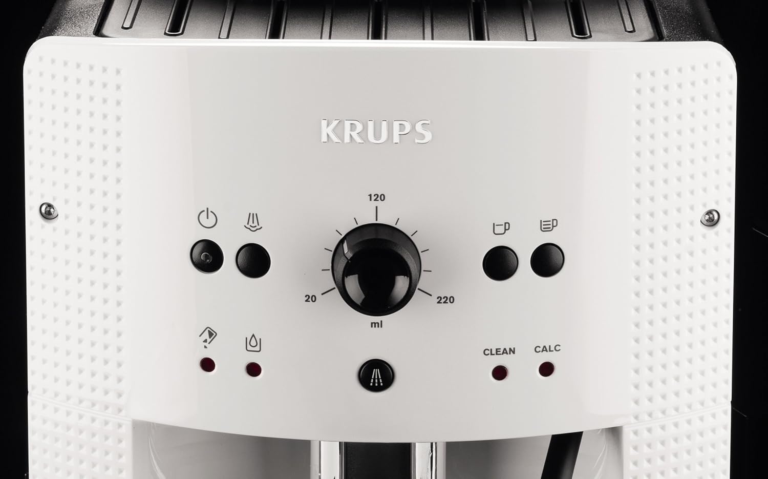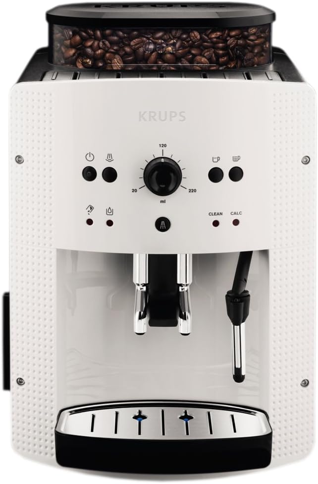 Krups Machine à café broyeur grain, 2 expresso simultanés, Nettoyage automatique, Buse vapeur Cappuccino, Essential blanche EA810570