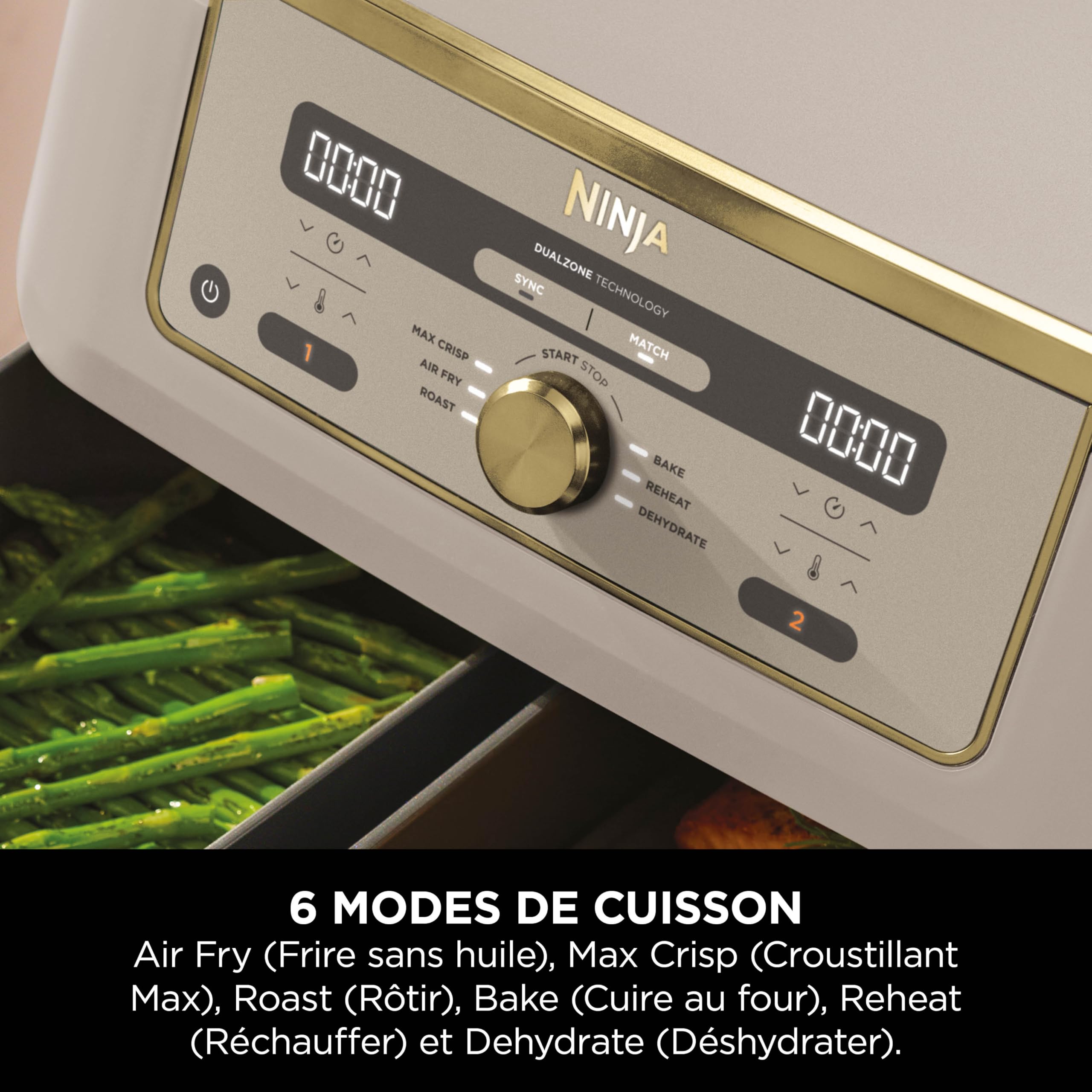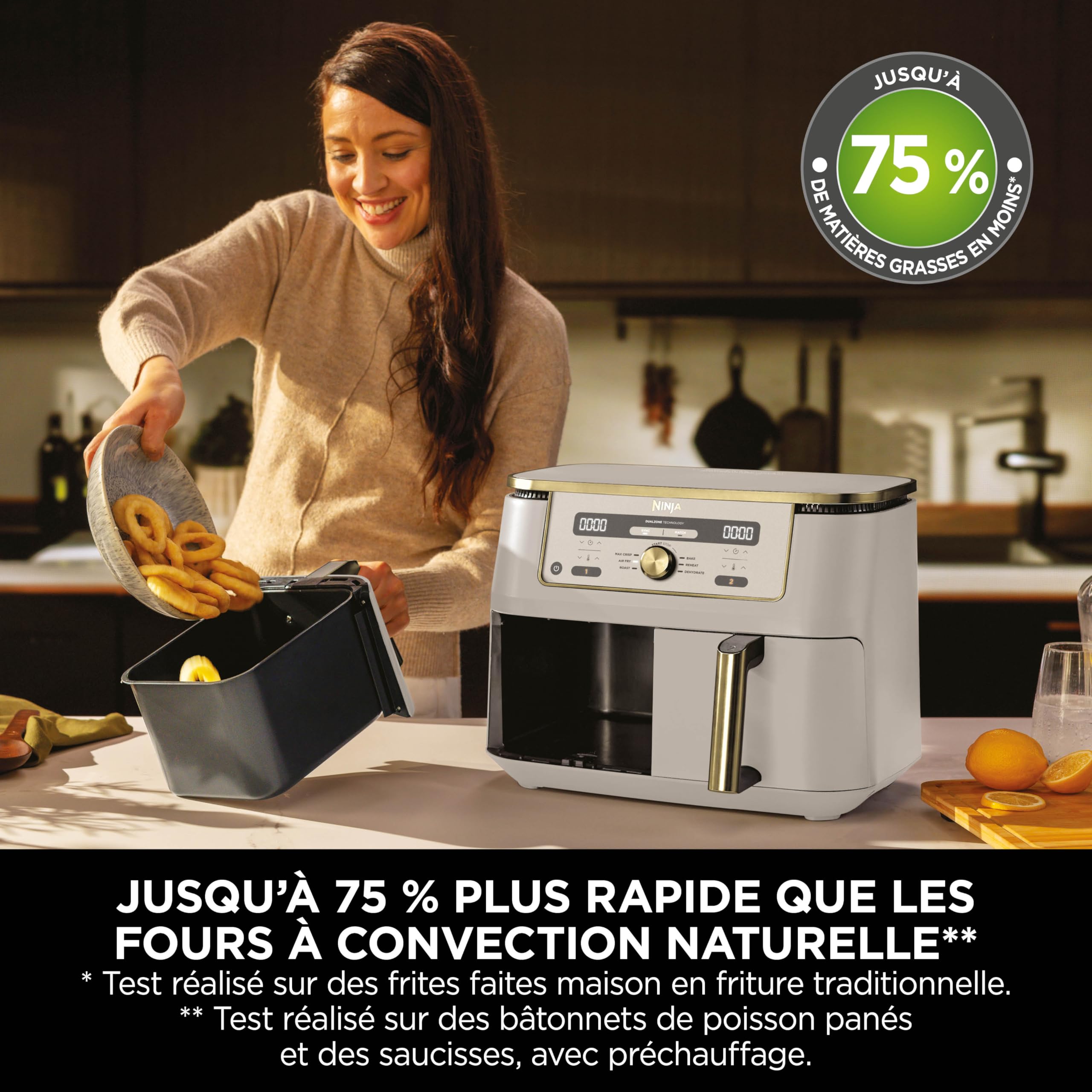 NINJA Dual Zone Max Air Fryer 2 Compartiments, Capacité Familiale de 9,5L, Max 240°C, Air Fryer 6-en1, Pièces Antiadésives Amovibles Lavables Au Lave-