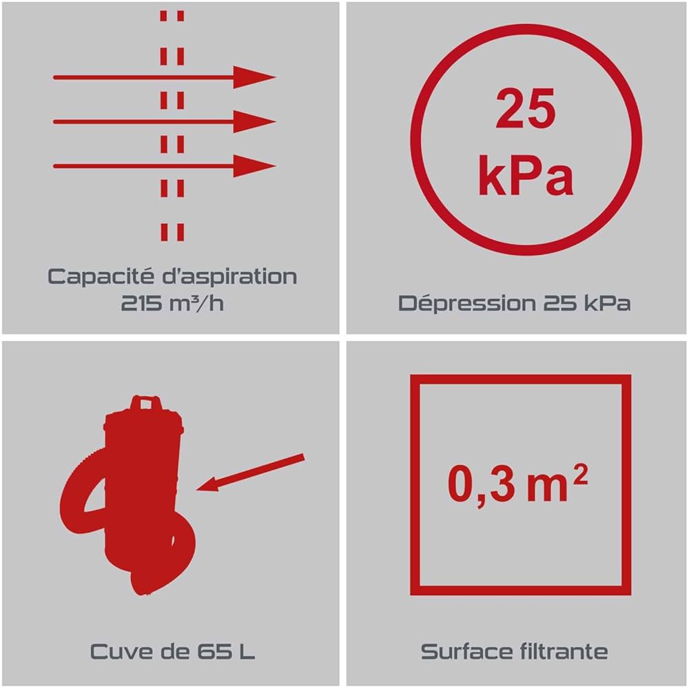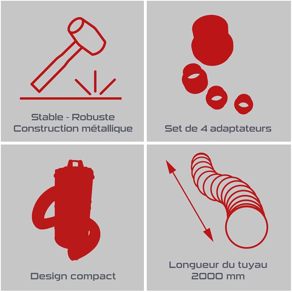 Practixx Système d'aspiration PX-AS-100 | Puissance : 1200 W | Puissance : 215 m³/h | Capacité : 65L | Réservoir en métal | Tuyau de 2 m de diamètre : 100mm | avec Accessoires : Cuisine et Maison