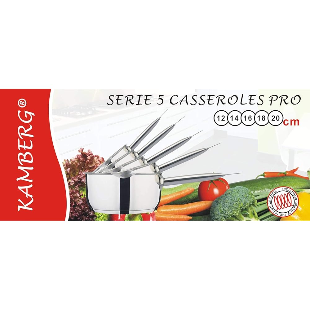 Kamberg - Gamme Pro - Batterie 5 Casseroles inox 12/14/16/18/20 cm - Acier Inoxydable Haute Qualité - Poignée anti chaleur Argent - Tous Feux dont Induction - 0008077 : Cuisine et Maison