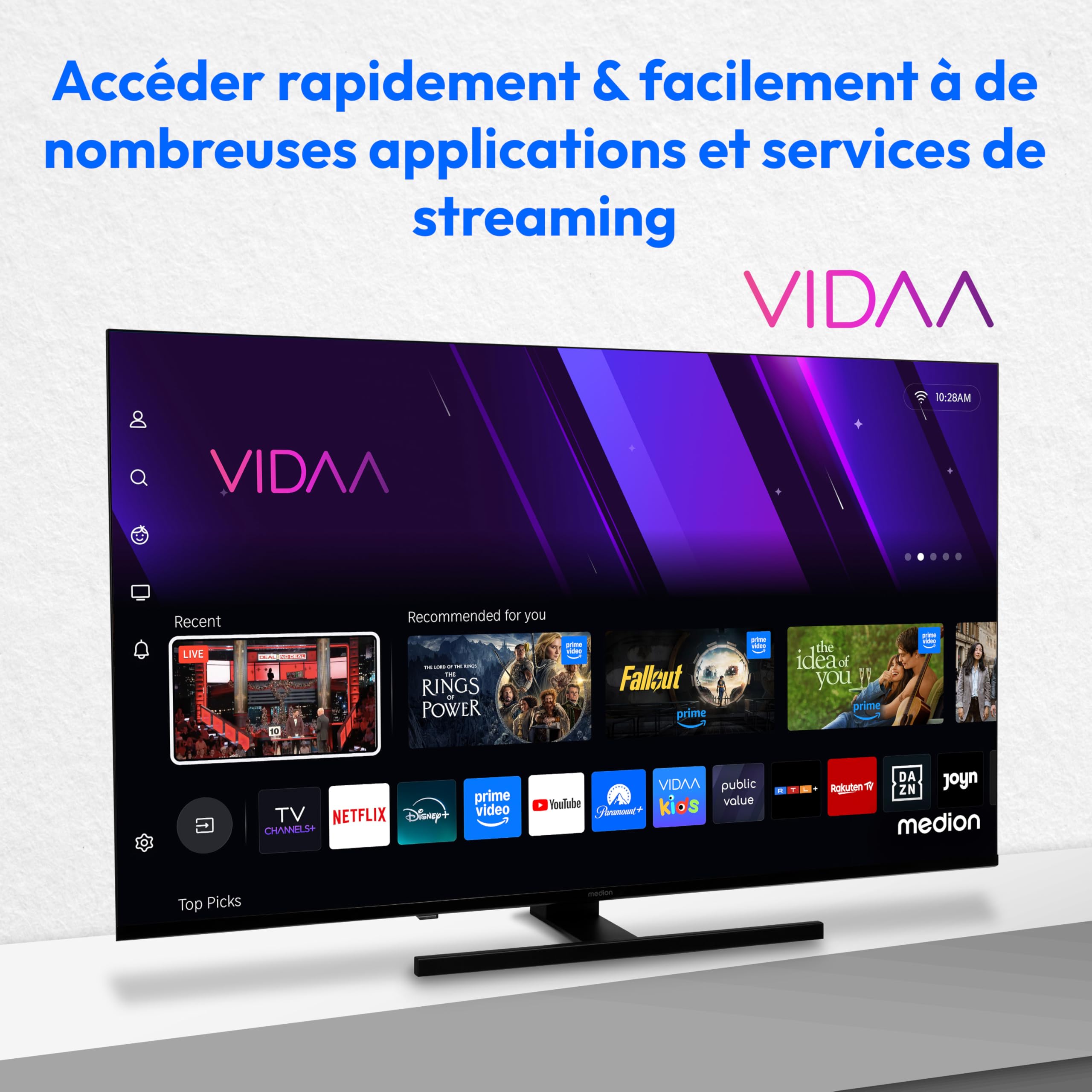 MEDION TV 50 Pouces 4K (125,7 cm) QLED Television (Smart TV 4K, Dolby Vision HDR, VIDAA Store, Prime Video, Disney+, DAZN, Paramount+, DTS X, Dolby At