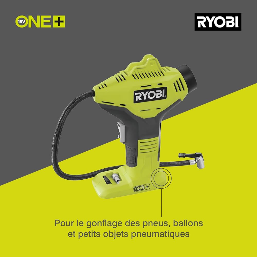 RYOBI - Compresseur 18V - jusqu'à 10,3 Bars - Livré avec 3 Embouts de gonflage - R18PI-0 : Bricolage