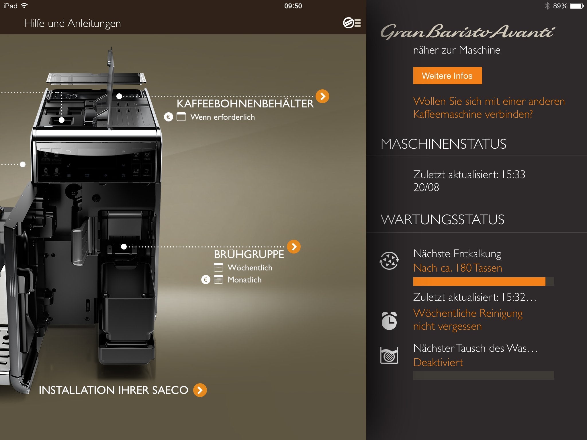 Saeco GranBaristo Avanti HD8967/01 Machine à café automatique + Application Acier/Anthracite