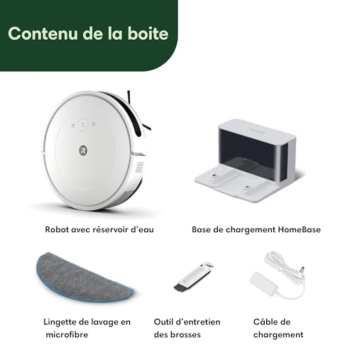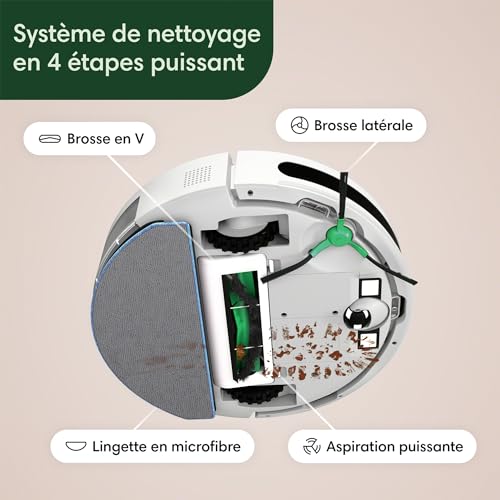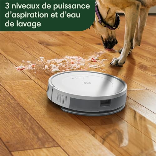 iRobot Roomba Combo Essential (Y0112) Robot Aspirateur et Laveur Connecté Efficace et Puissant Système de Nettoyage en 4 étapes 3 Niveaux d'aspiration Programmable Via Application ou Voix : Cuisine et Maison